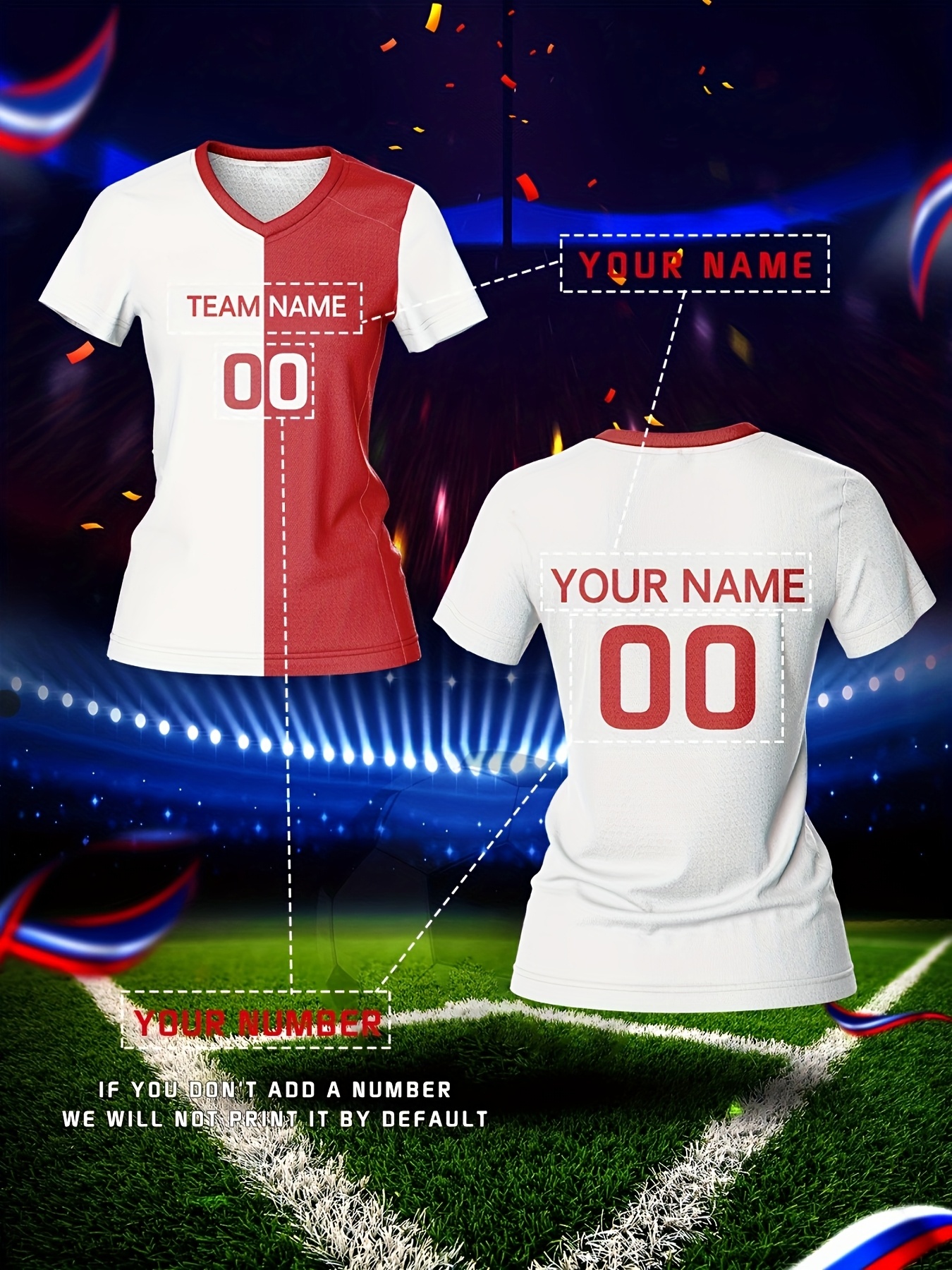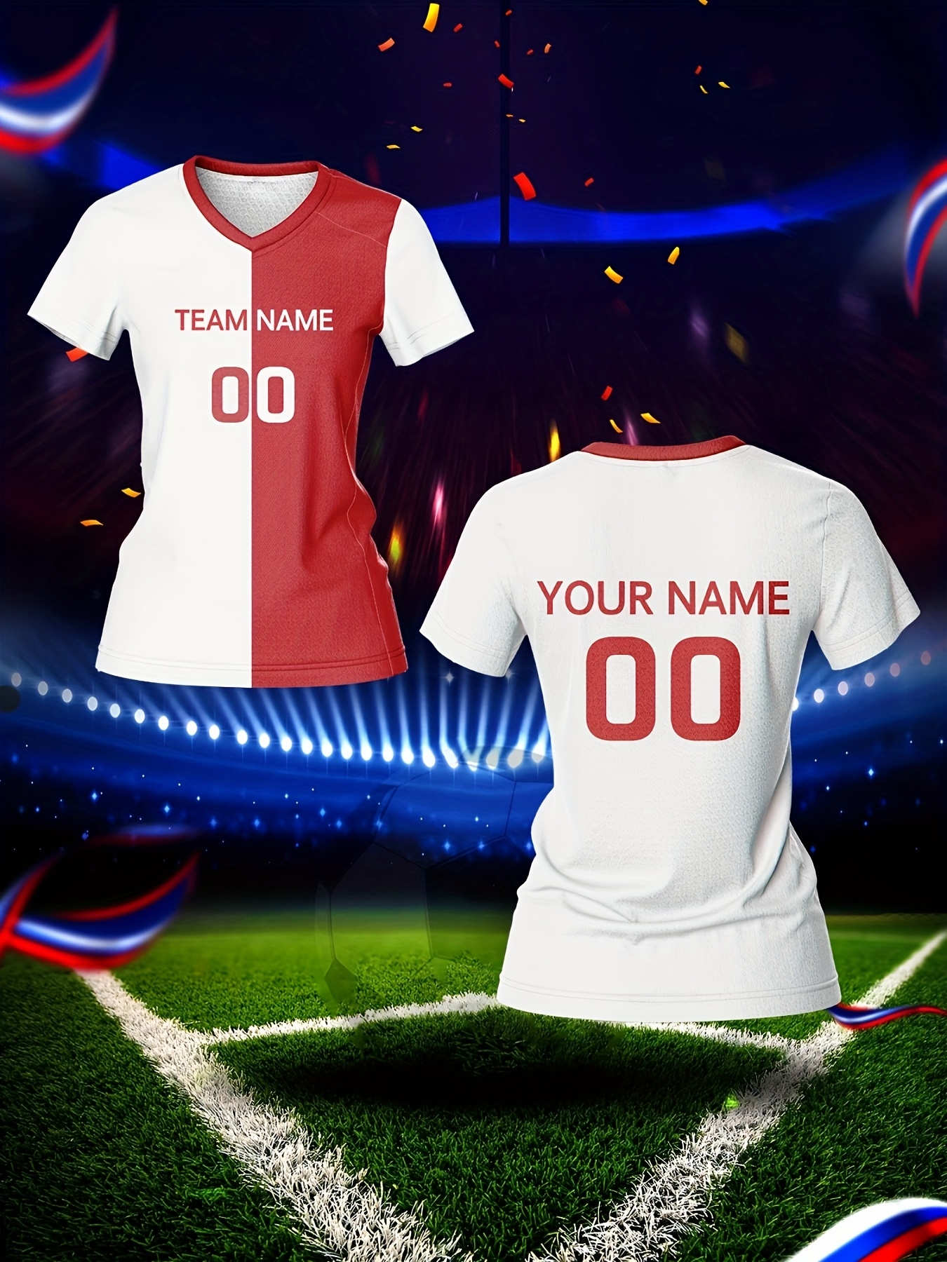 [Comfortable] Customizable Women's V-Neck Soccer Jersey - Personalized Name & Number, Breathable Polyester, Quick-Dry Athletic Top for Team Training, Sports Fitness & Casual Wear