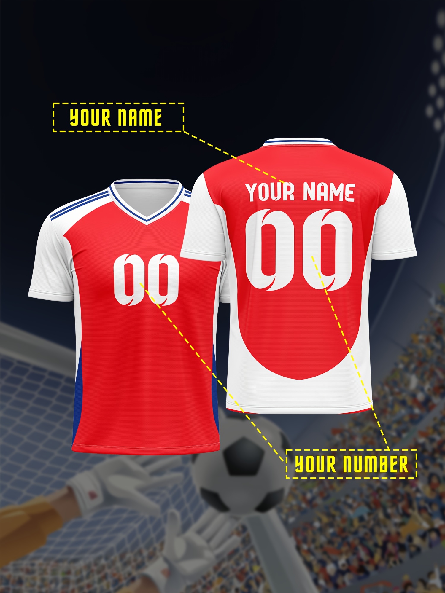 [Customizable Soccer Jersey] Customizable Youngsters' Soccer Jersey | V-Neck, Comfort Fit with Name & Number, Breathable Polyester, Machine Washable, Perfect for Sports & Outdoor Activities