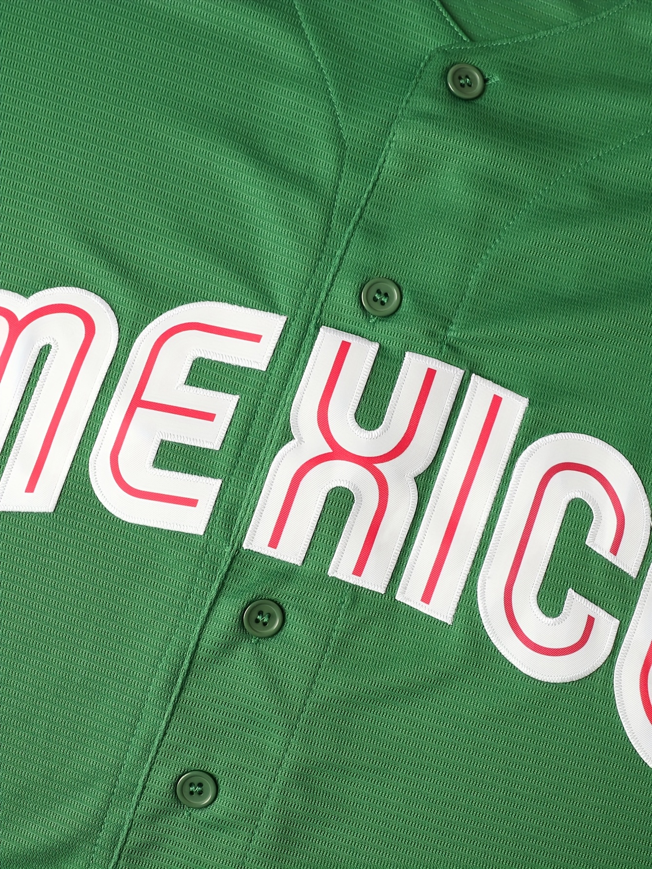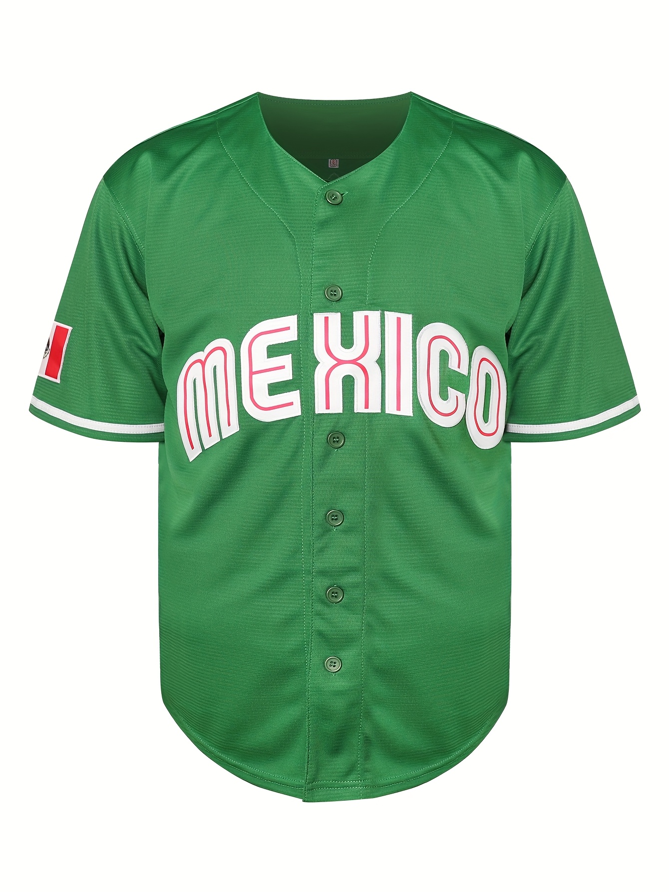 Men's Vintage Mexico Baseball Jersey - Green & White Retro Design, Moisture-Wicking Polyester, V-Neck, Short Sleeve, Button-Up Front for Sports, Parties & Casual Wear