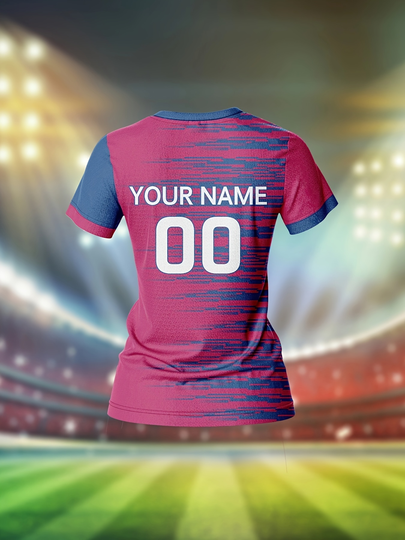 [Quick-Dry Soccer Jersey] Breathable Quick-Dry Custom Women's V-Neck Soccer Jersey | Personalized Name & Number, Pink with Blue Stripes for Team Training, Sports Fitness, and Casual Wear
