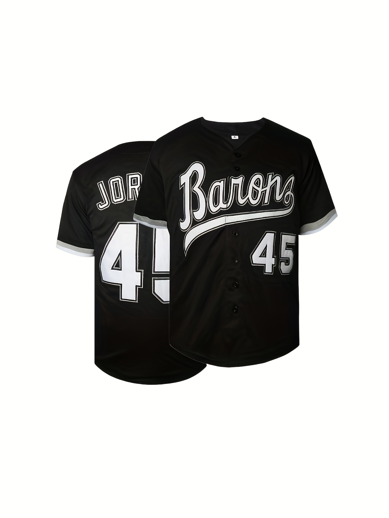 1994 Jordan Birmingham Baseball Jersey #45 - Vintage Retro V-Neck Button-Up, Moisture-Wicking Breathable Polyester, Loose Fit S-3XL for Men's Sports, Casual & Party Wear, Machine Washable