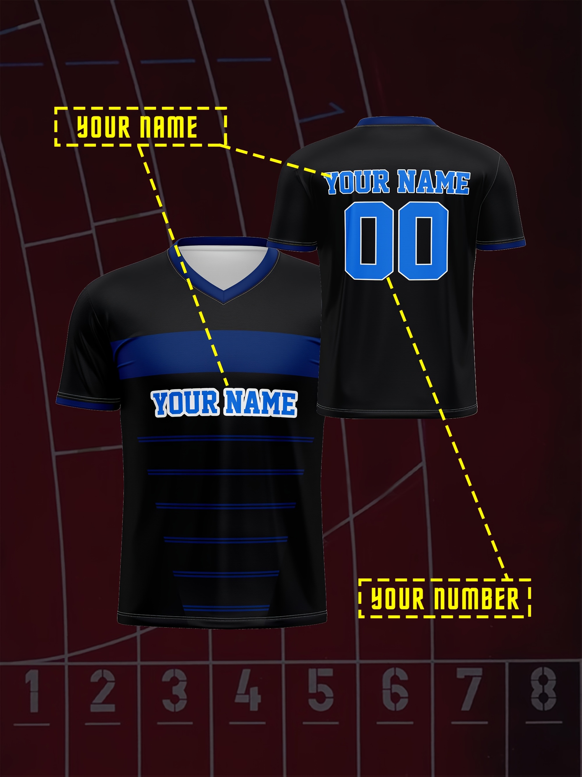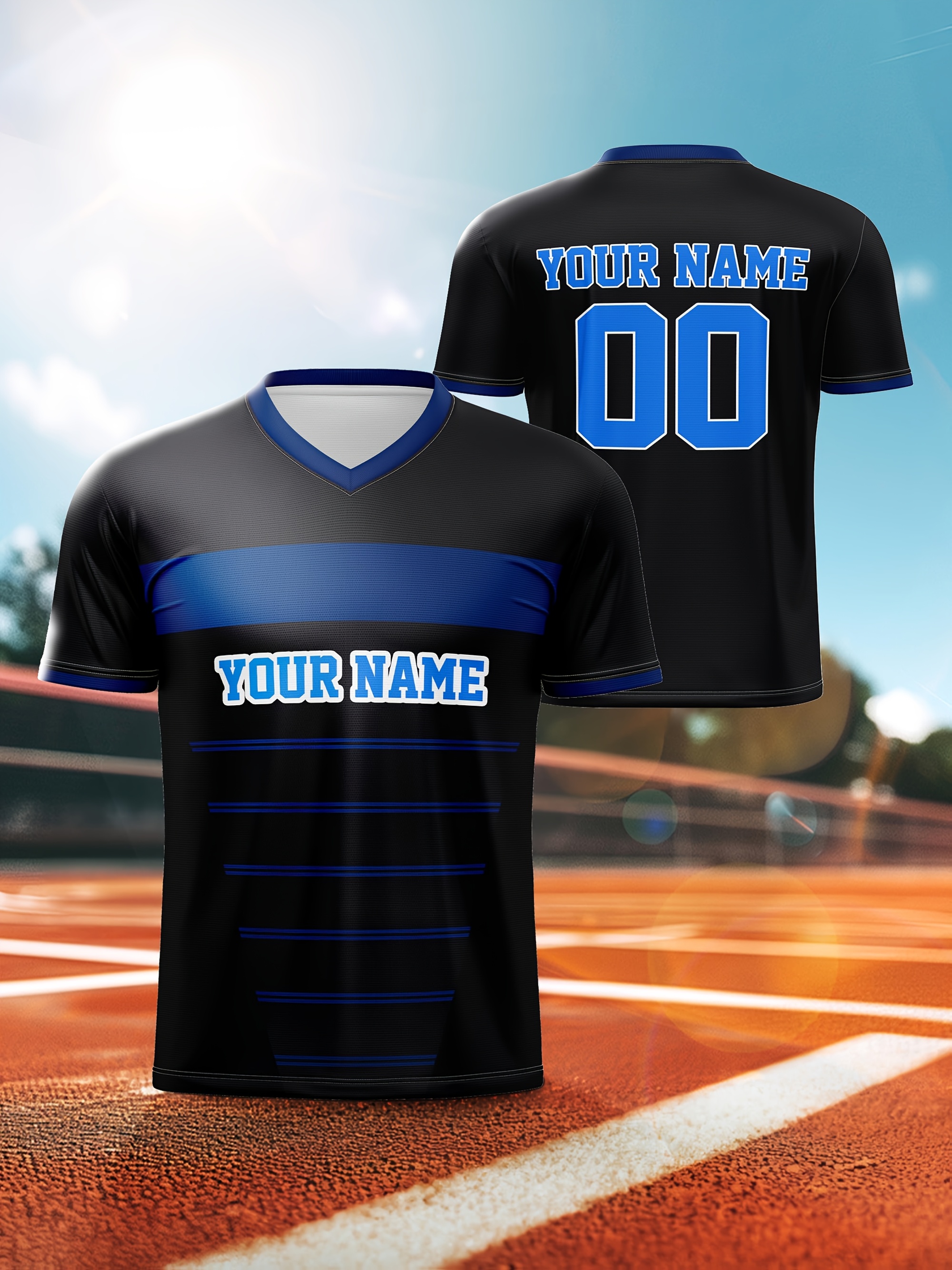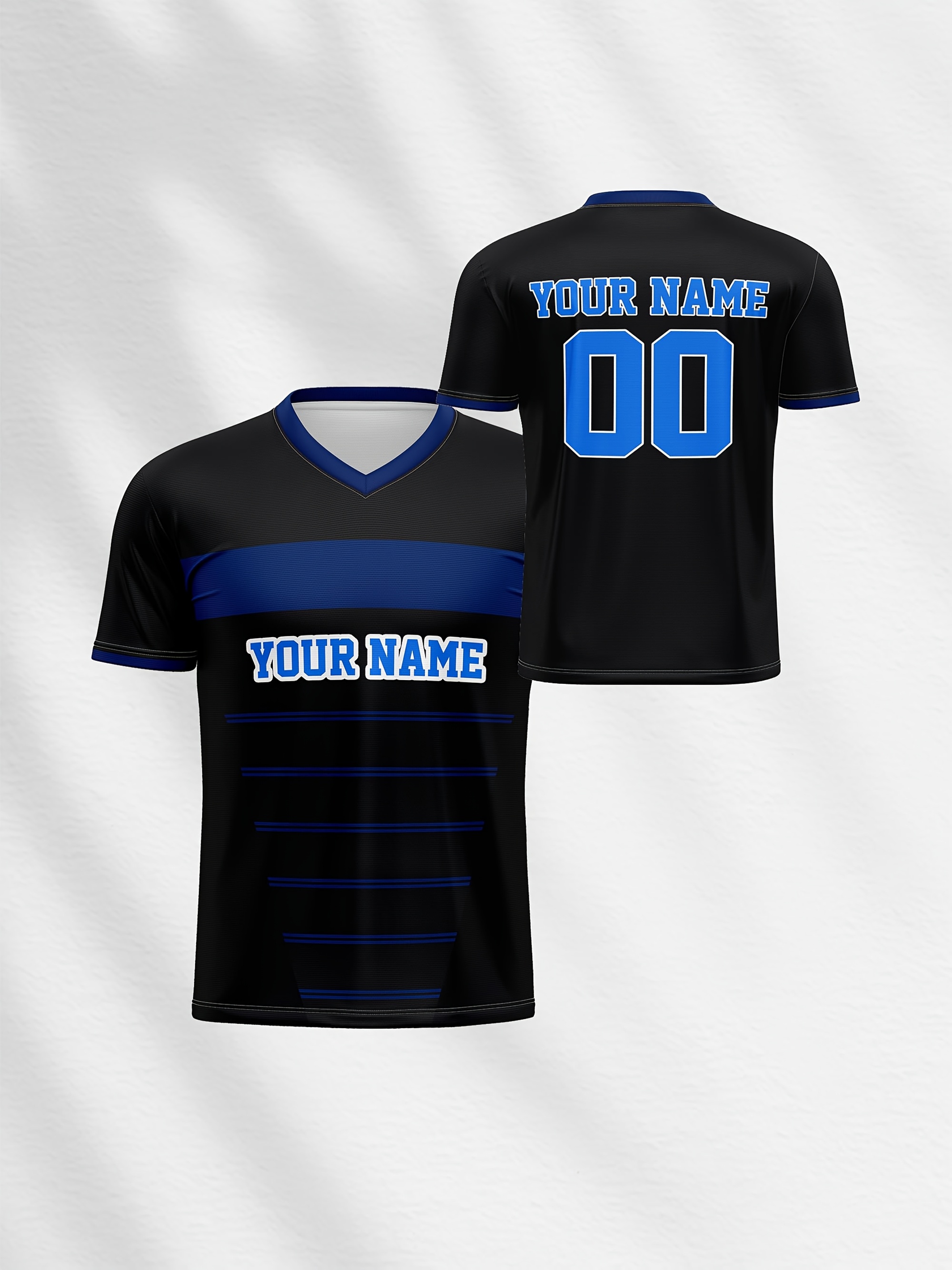 1pc Customizable Kids Football Jersey - Polyester V-Neck Soccer Shirt with Personalized Name & Number, Medium Stretch, All-Over Print, Casual Sports Top for Boys & Girls, Perfect for Training, Beach, Weekend - Knit Fabric, Regular Fit