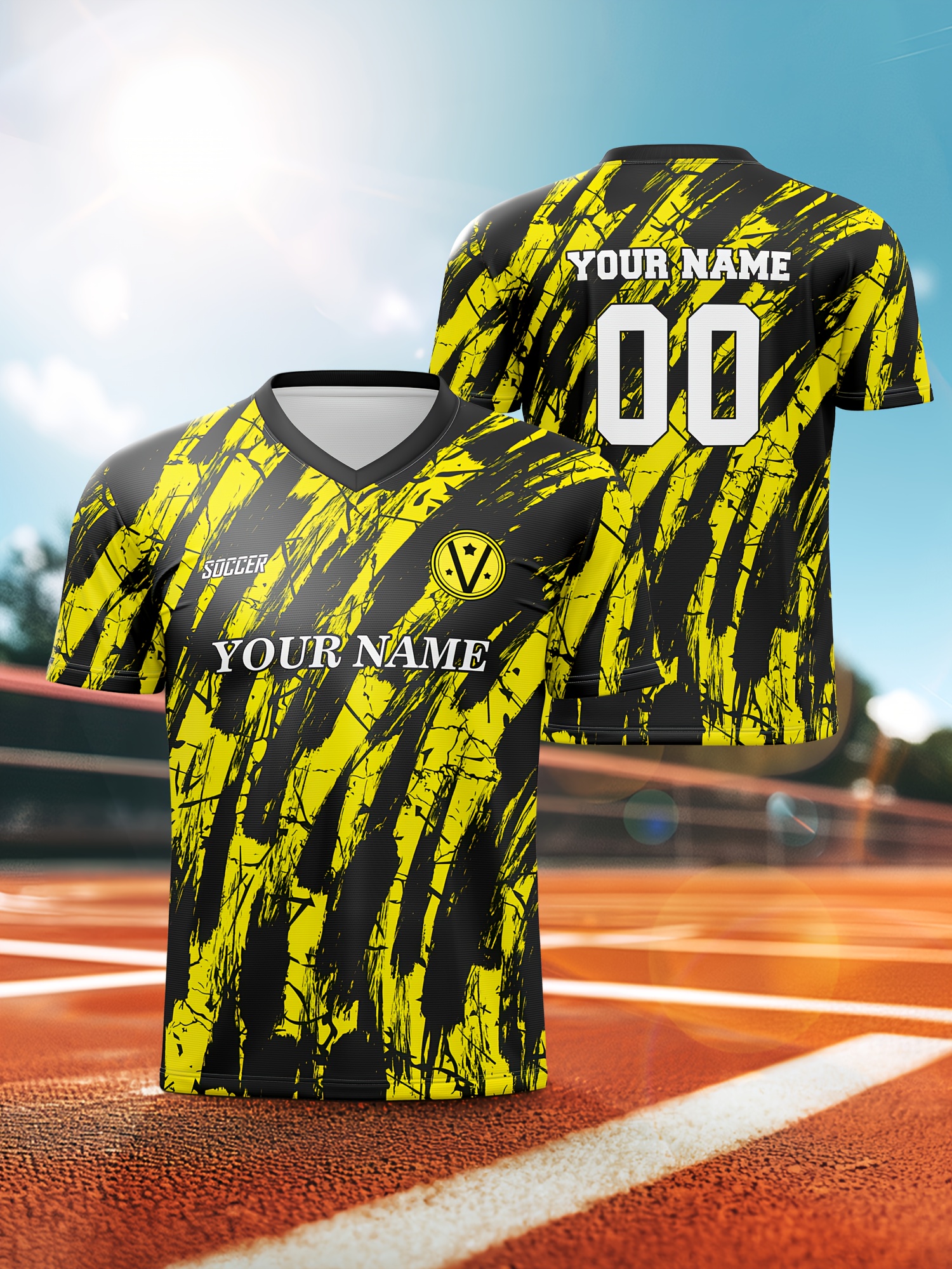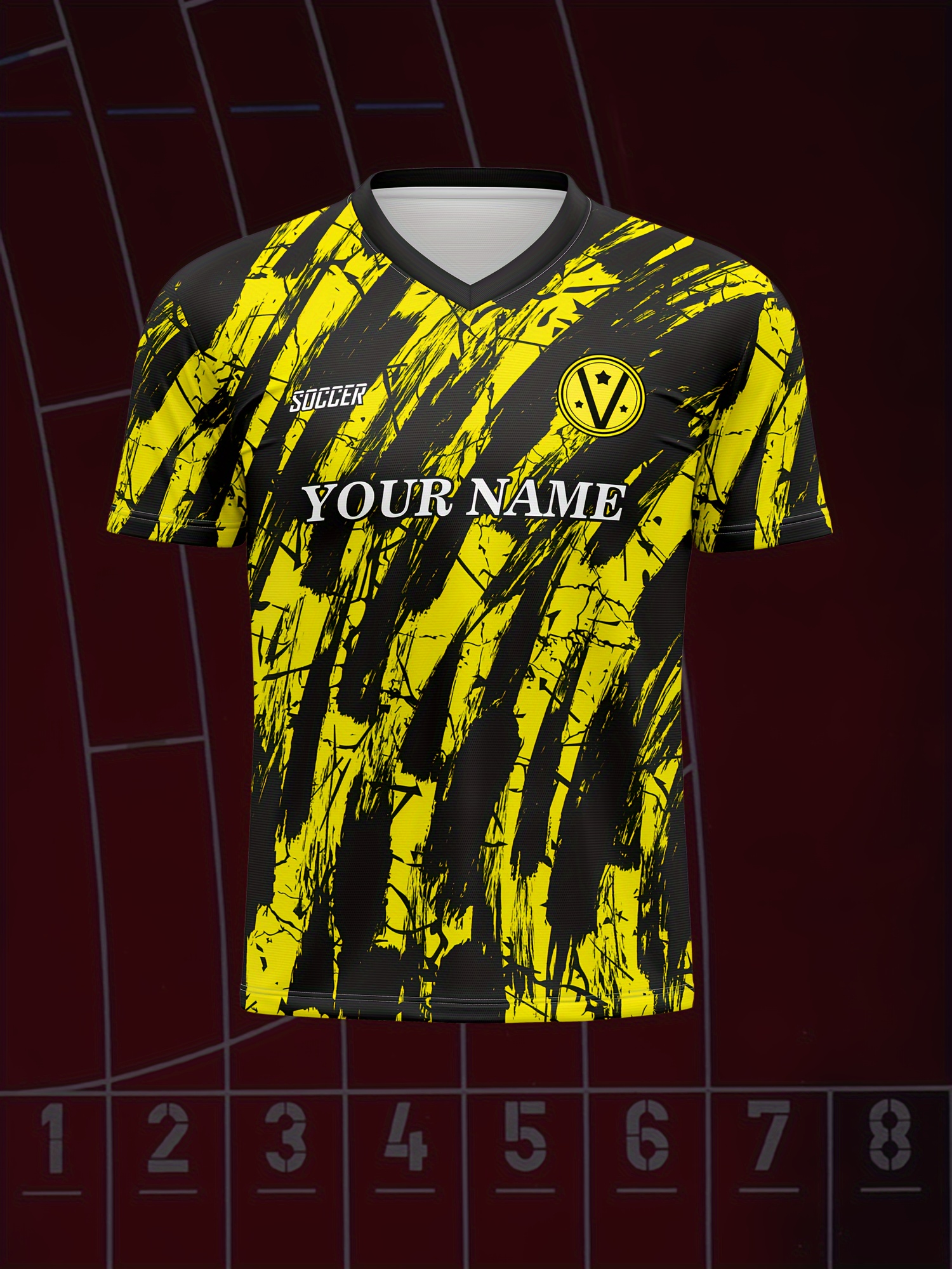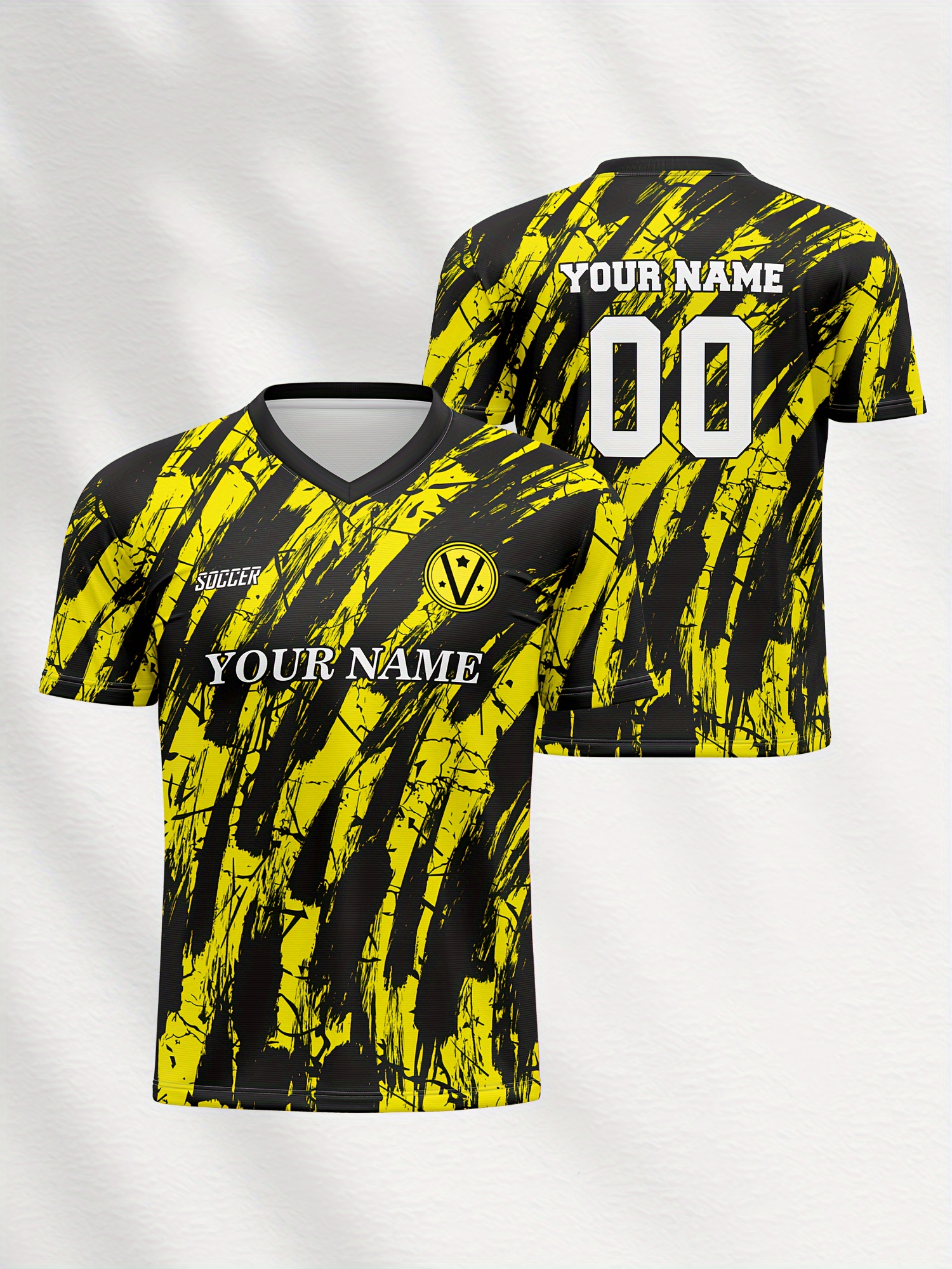 1pc Customizable V-Neck Soccer Jersey for Kids - Breathable Polyester Sports Top with Personalized Name and Number, Ideal for Outdoor Activities, Training, Beach, Casual Wear - Unisex Youth Athletic Shirt