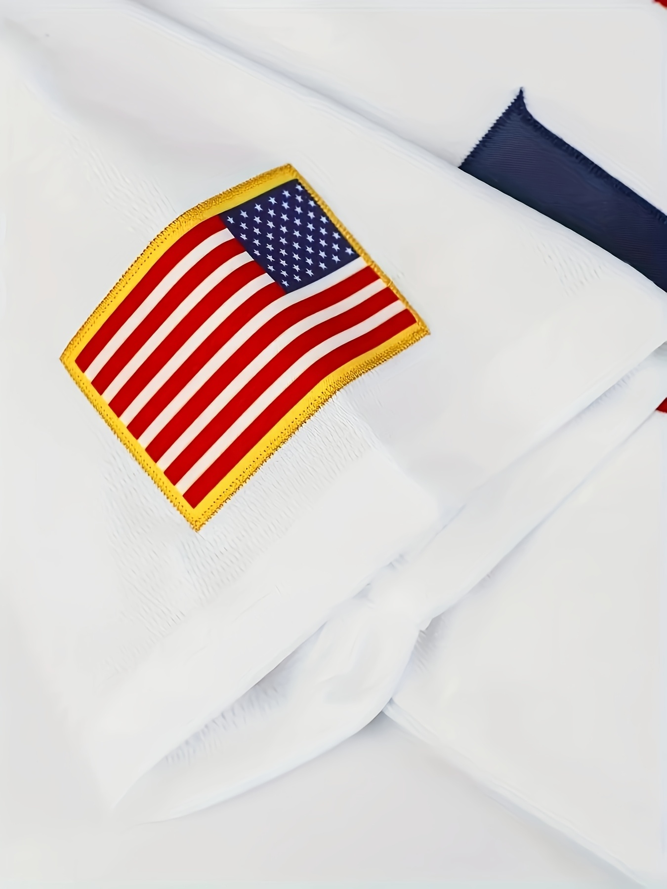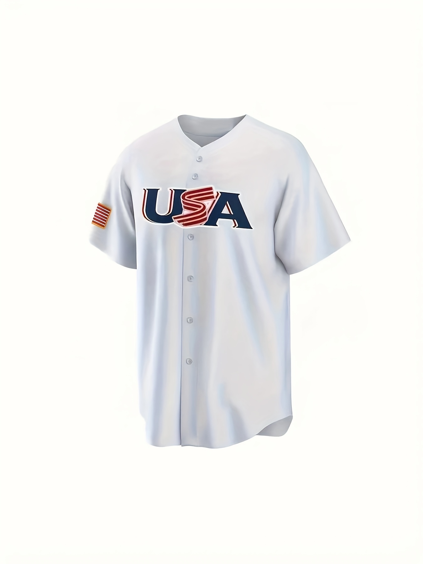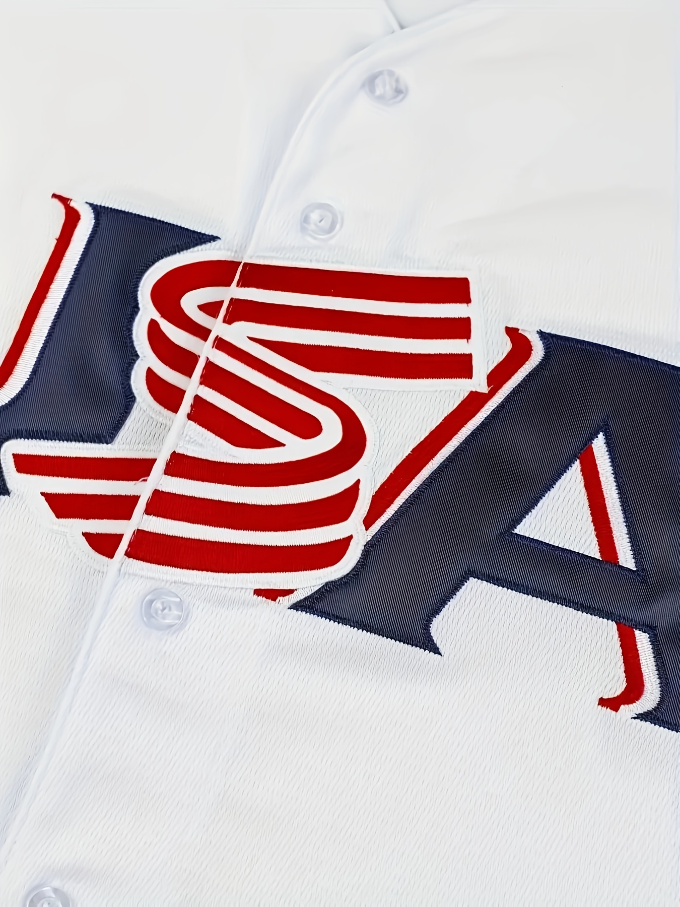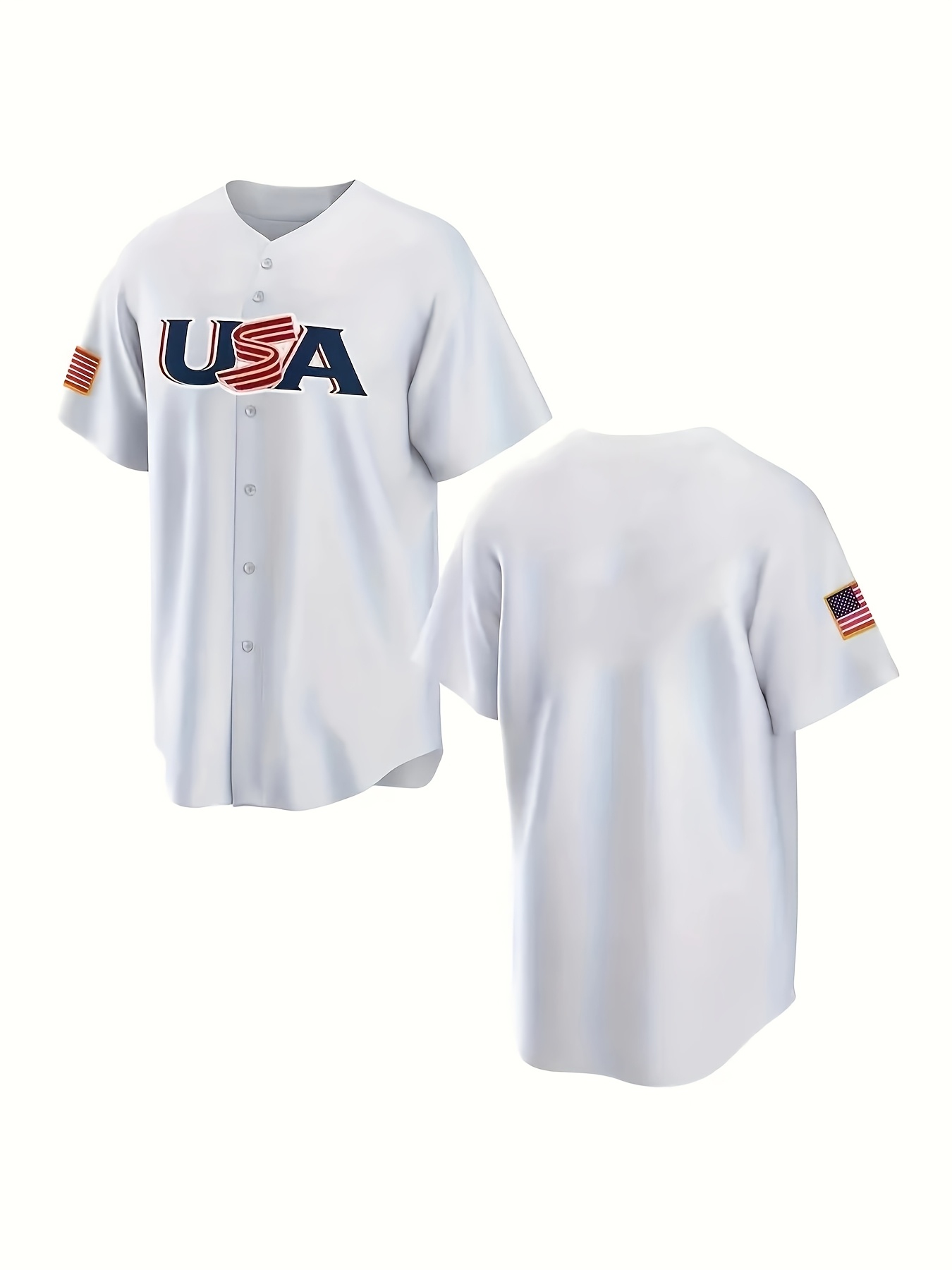 1pc Men'S Classic American Baseball Jersey Shirt - V-Neck, Short Sleeve, Embroidered USA Flag, Breathable Polyester, Lightweight, Moisture-Wicking, Ergonomic Design for Sports, Casual & Team Events