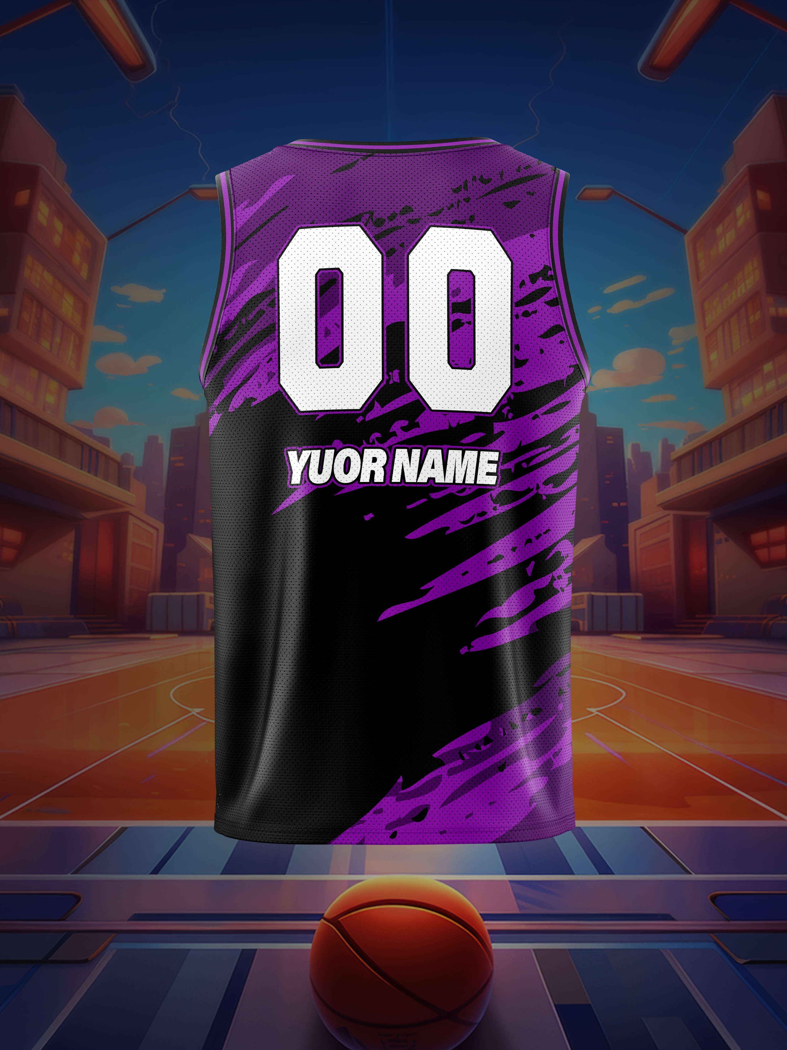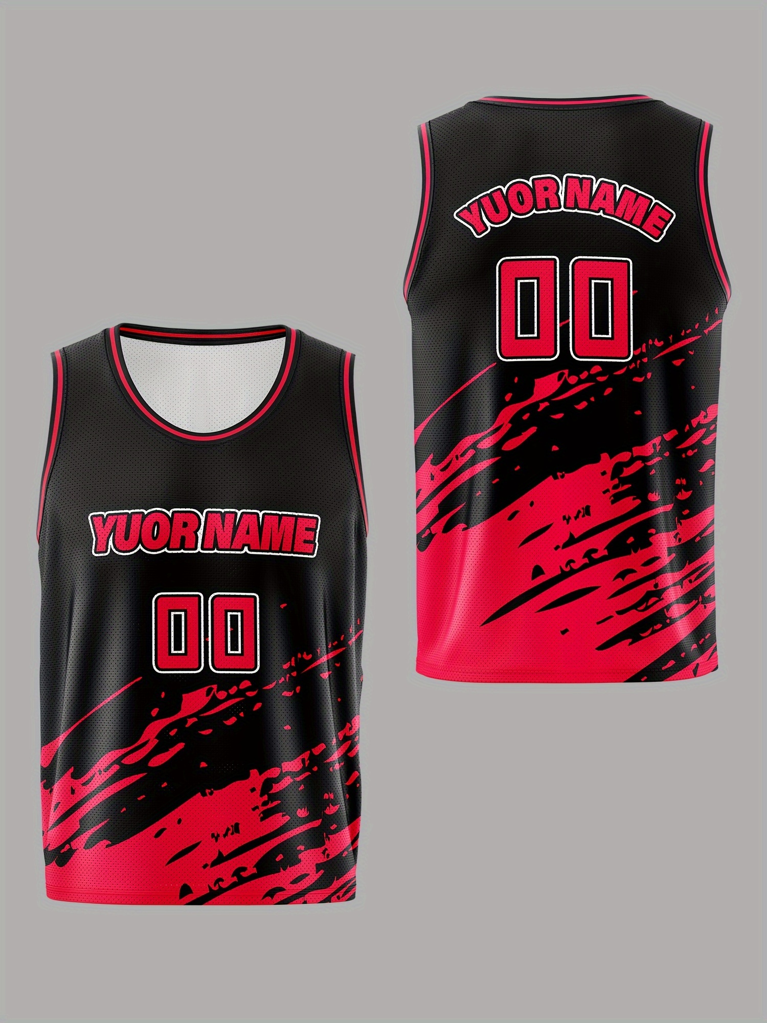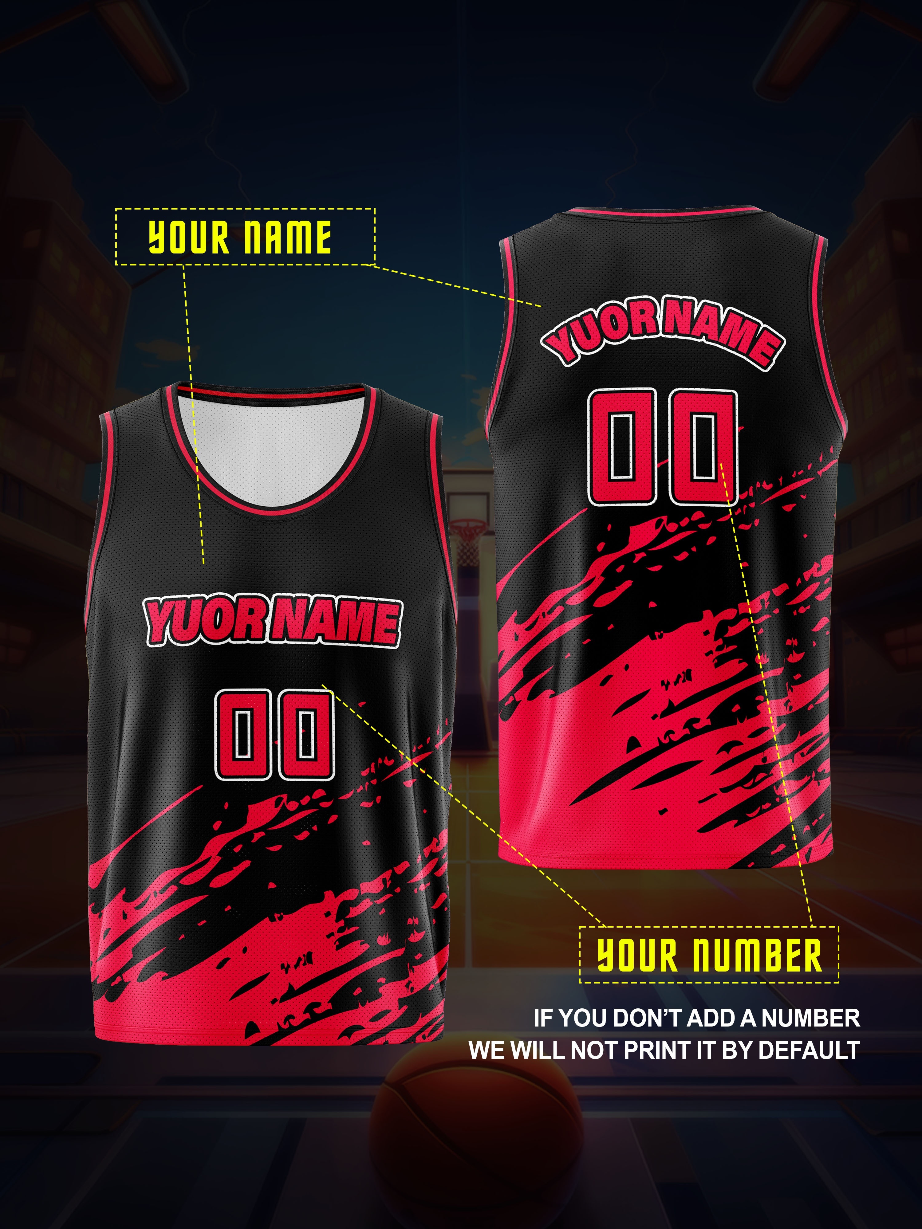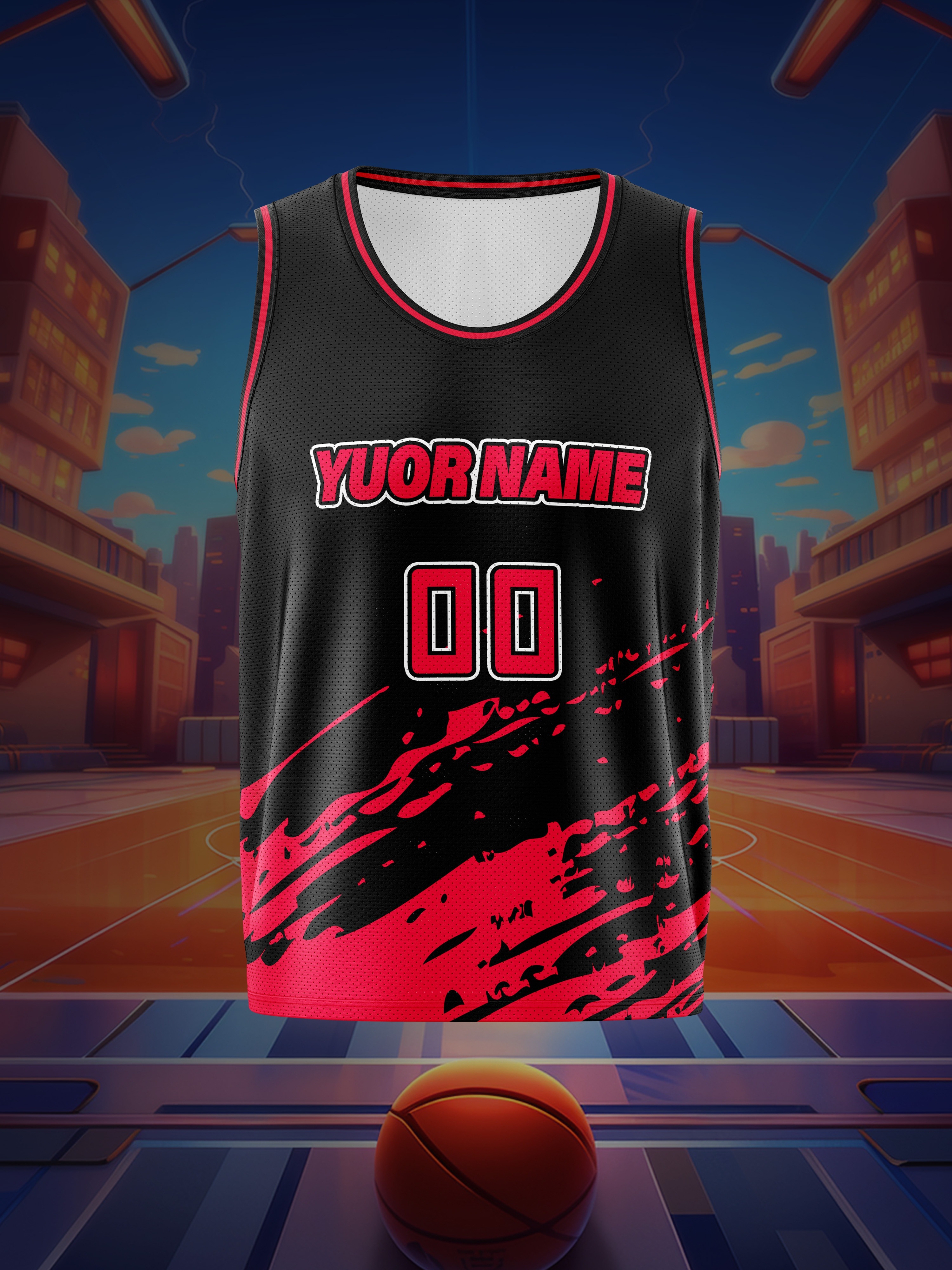 [Customizable] Youngsters' Customizable Basketball Tank Top | Polyester | Breathable, Comfort-Fit, Washable | Training, Games & Outdoor Fun | Black & Red with Splash Design