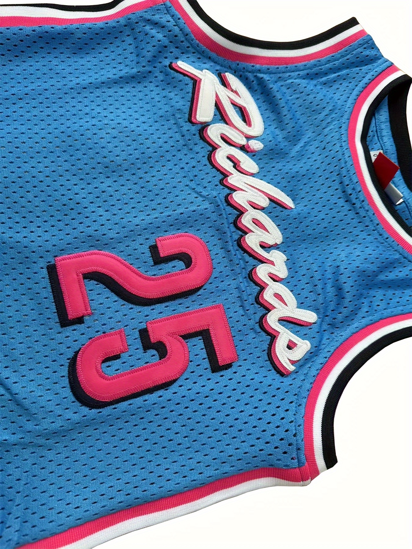 Girls' #25 Blue & Pink Basketball Jersey - High School Sport Uniform for Ages 3-14, Breathable Polyester, "RICHARDS" & Number, Round Neck, Ideal for Training & Casual Wear, Youth Sportswear|Casual Hstyle| Details
