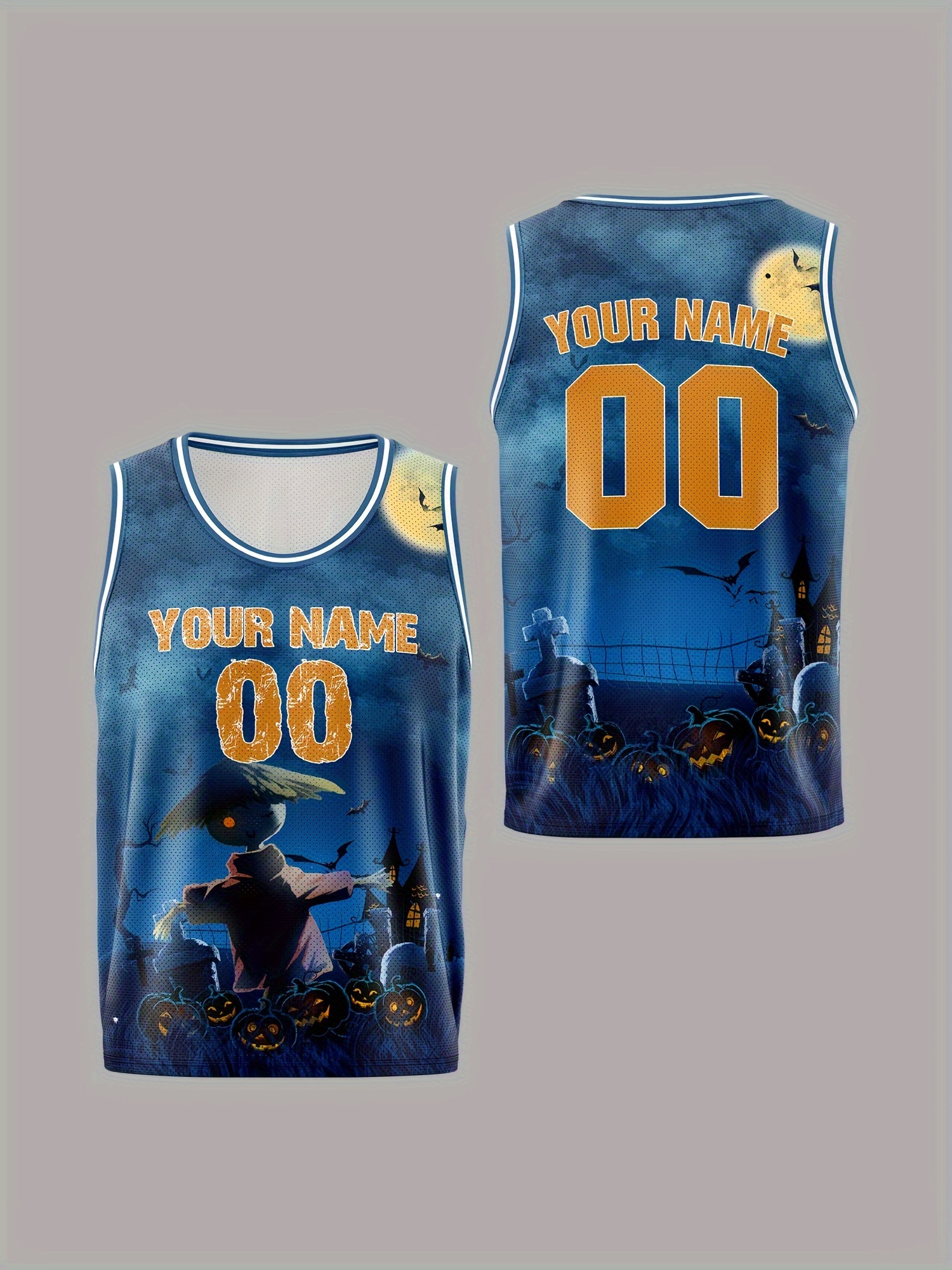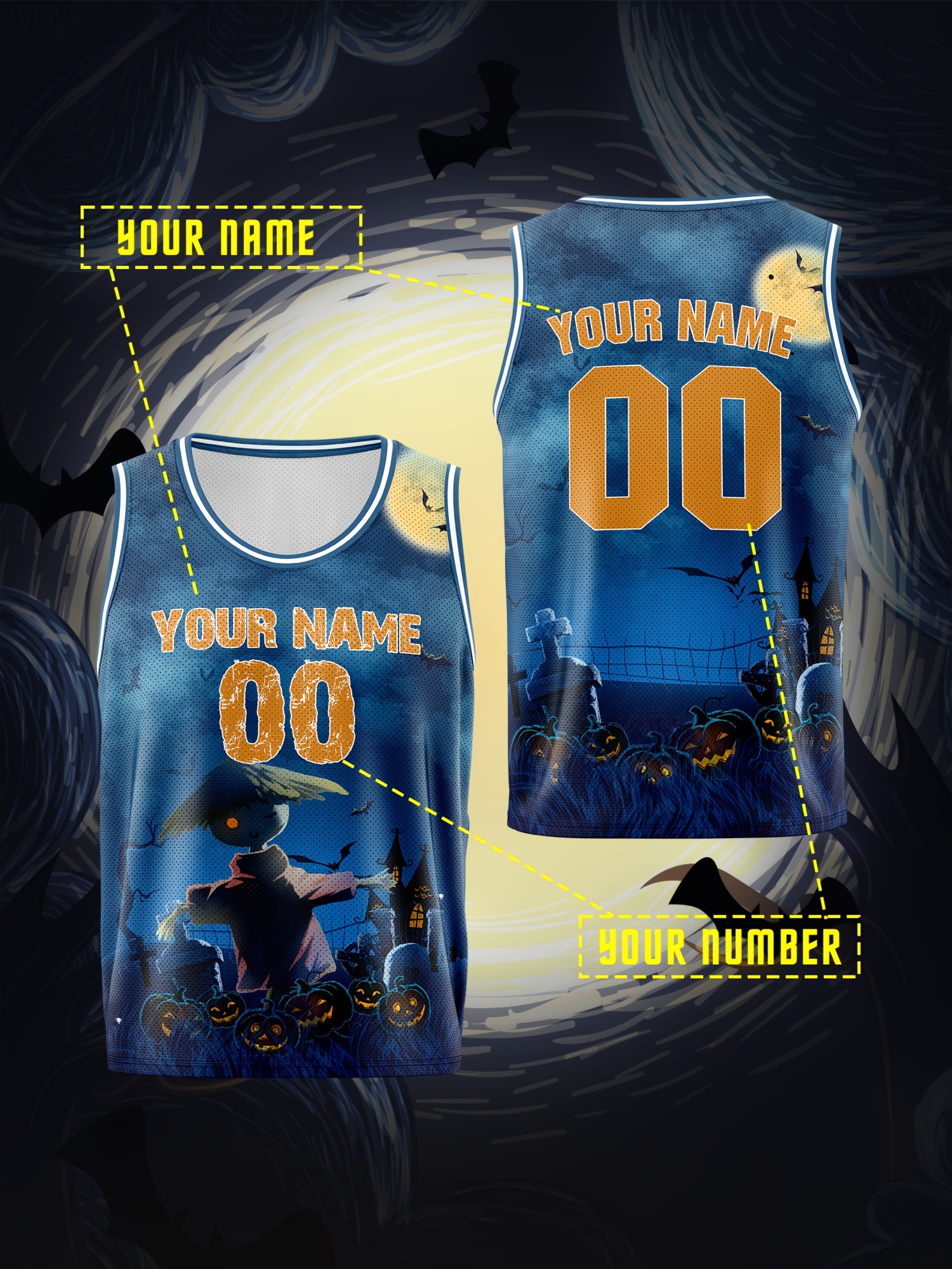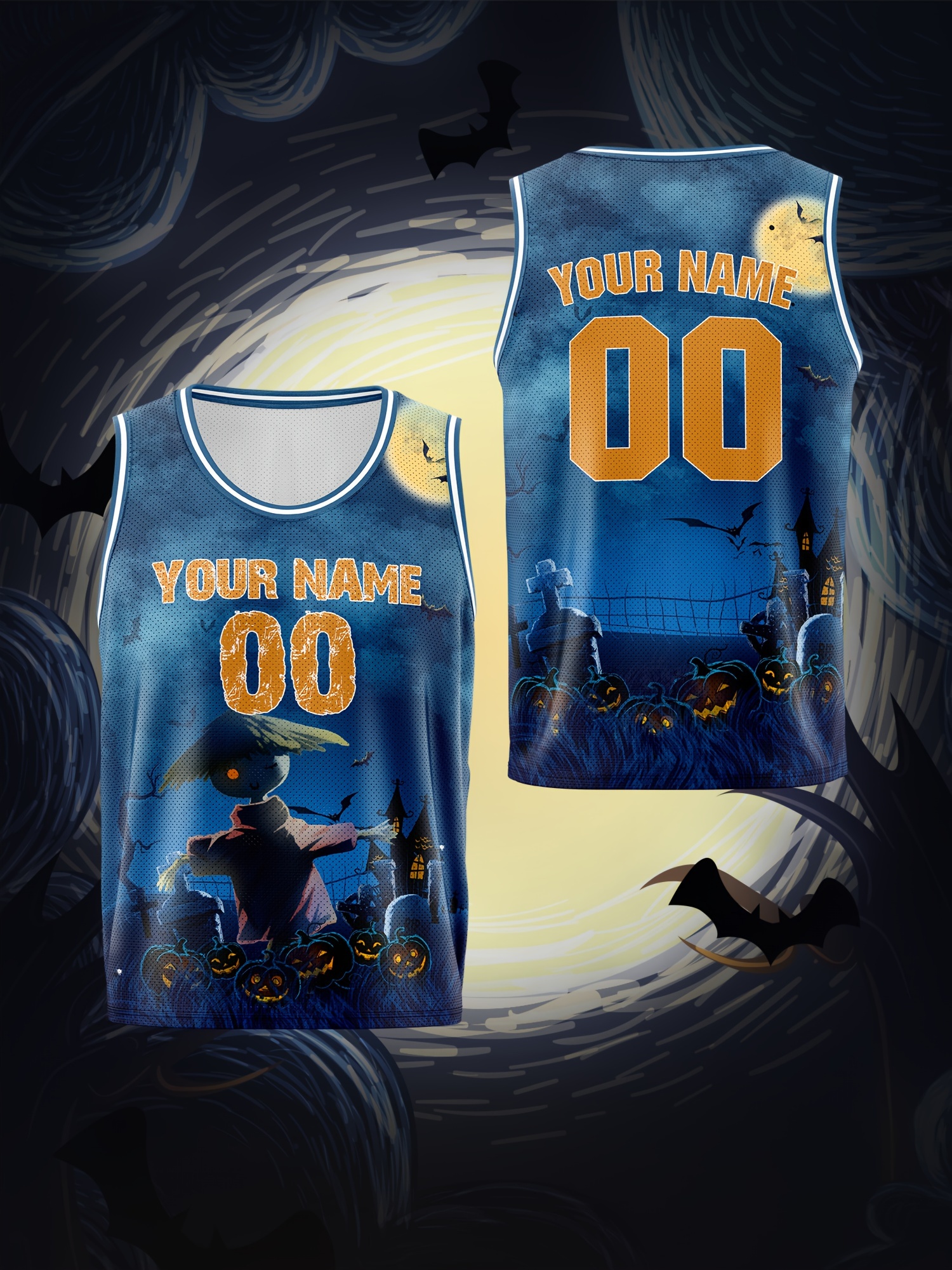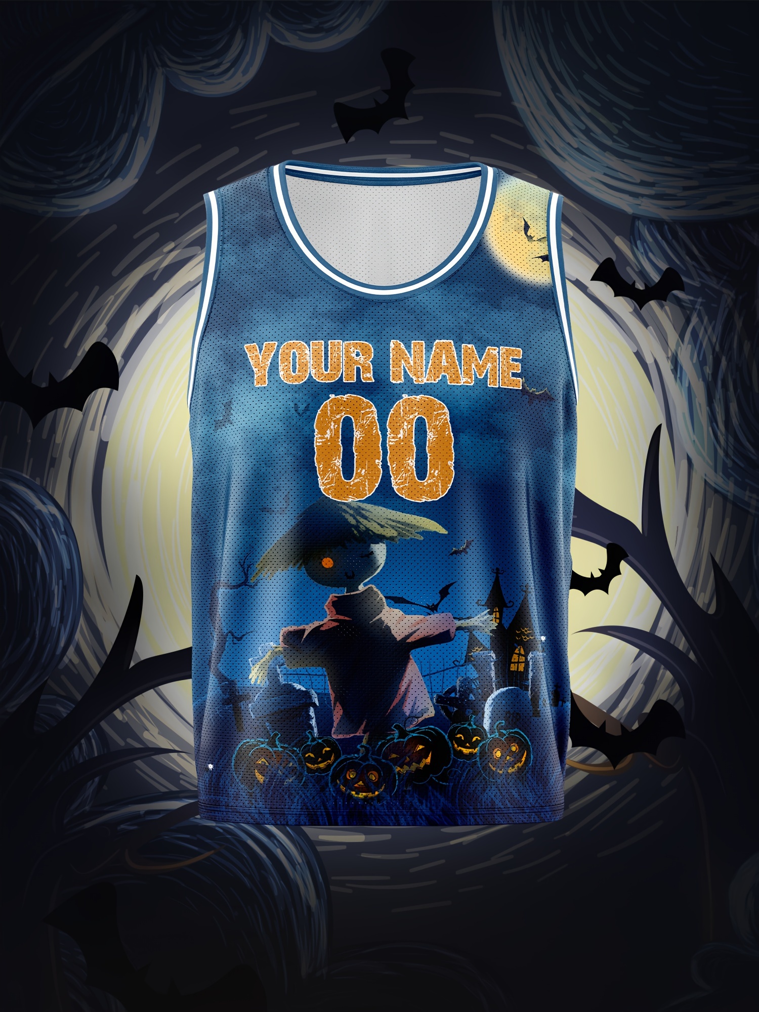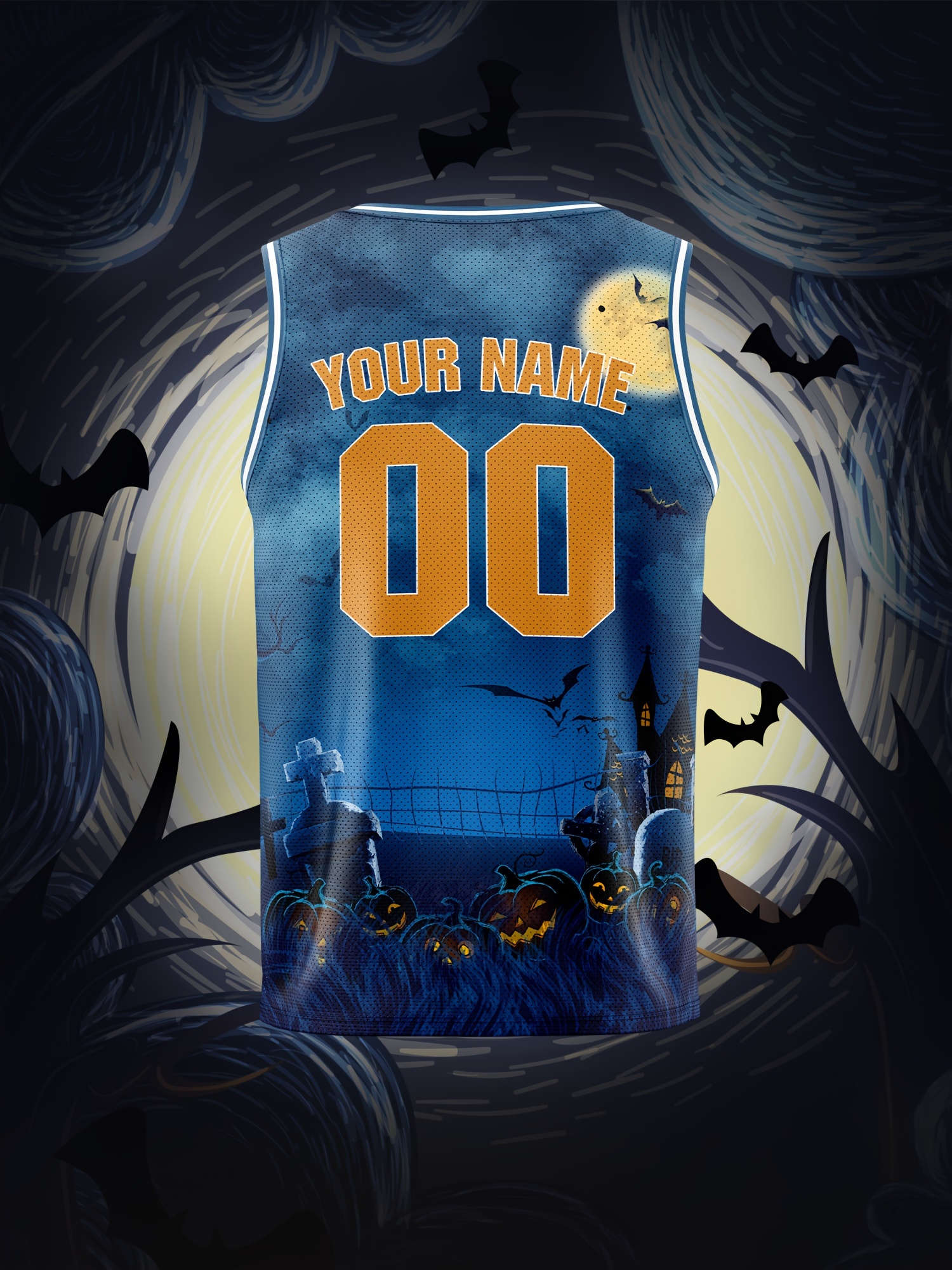 Custom Youngsters' Basketball Jersey with Name & Number - Halloween Theme, Breathable & Comfort Fit for Team Training, Outdoor Sports & Casual Wear