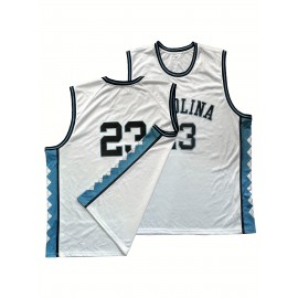 Youngsters' Breathable Basketball Jersey Vest - White & Blue Polyester Sports Vest with " Carolinas 23 " Embroidery, Sleeveless Design for Training, Outdoor Activities, and All Seasons, Basketball Gear