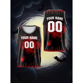 Customized Kids' Basketball Vest with Name and Number, Halloween Sports Jersey, Breathable Polyester Knit Fabric, All-Over Print, Loose Fit for Boys & Girls, Outdoor Sports & Casual Wear, Washable & Festive Occasions
