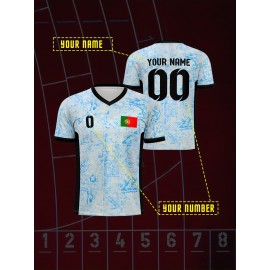 Customizable Youth Soccer Jersey - V-Neck Athletic Top with Name & Number, Light Blue & White Pattern, Breathable Fabric for Soccer, Running, Beach & Casual Wear, Soccer Accessories, Soccer Player Gear, Sporty Youth Design, Comfortable Fit