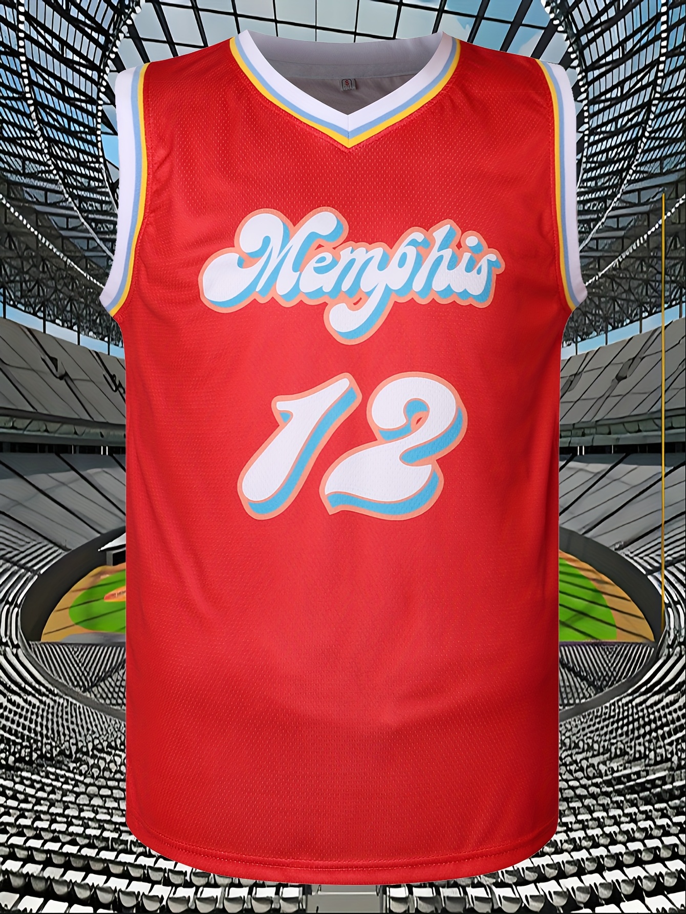 Men's #12 Red Basketball Jersey - Vibrant Orange & Blue Design, Breathable Polyester Mesh for Training, Competition, and Team Sports, Sizes S-XXXL