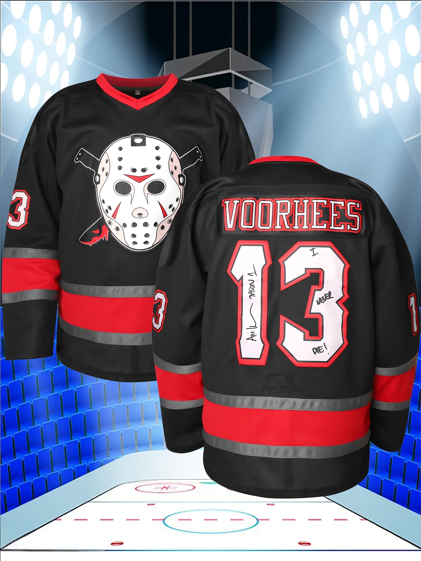 Men's #13 Black Embroidered Ice Hockey Sweater - Breathable Polyester, V-Neck Captain's Jersey with Classic Red & White Stripes, Ideal for Training, Competitions & Casual Wear in Spring, Summer, Fall, Hockey Jersey