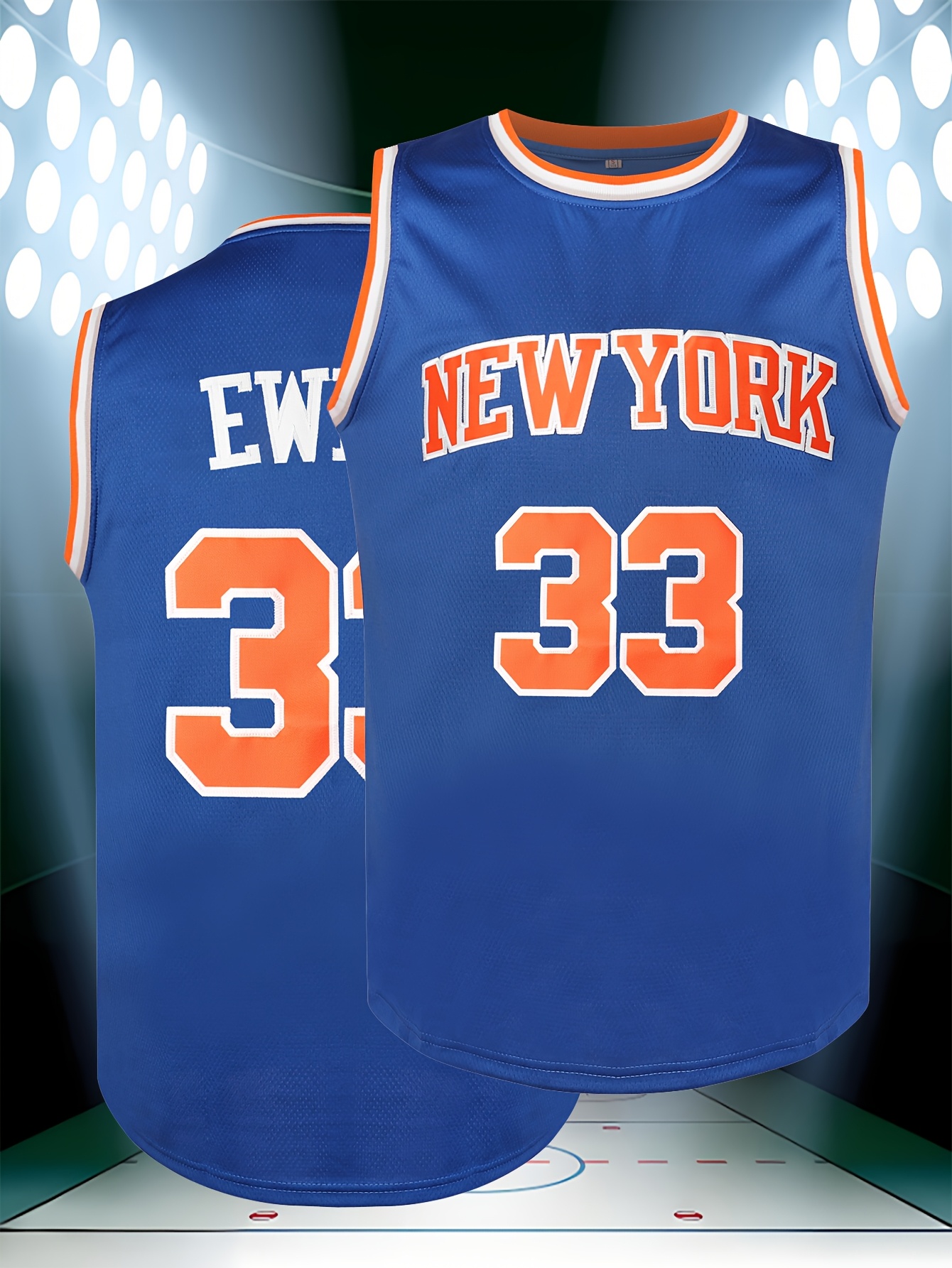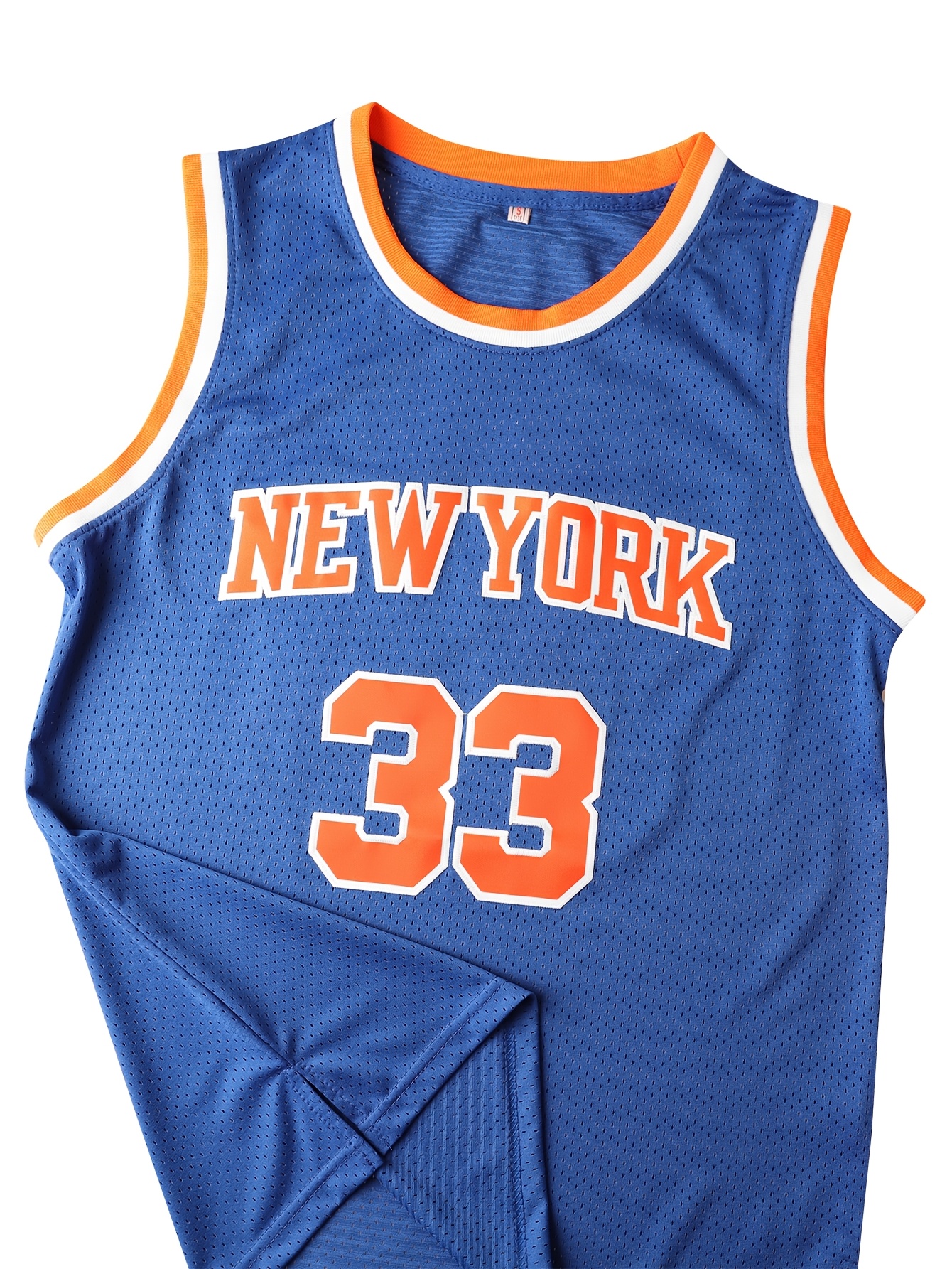 Men's #33 New York Basketball Jersey - Blue & Orange,, Lightweight Polyester, Round Neck Sleeveless Sports Shirt for Training, Competition & Casual Wear