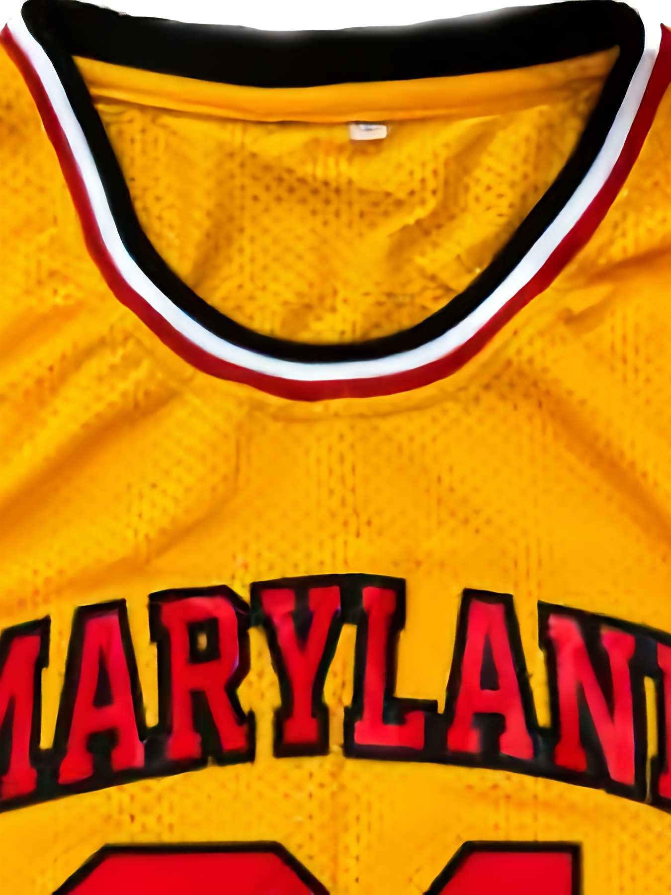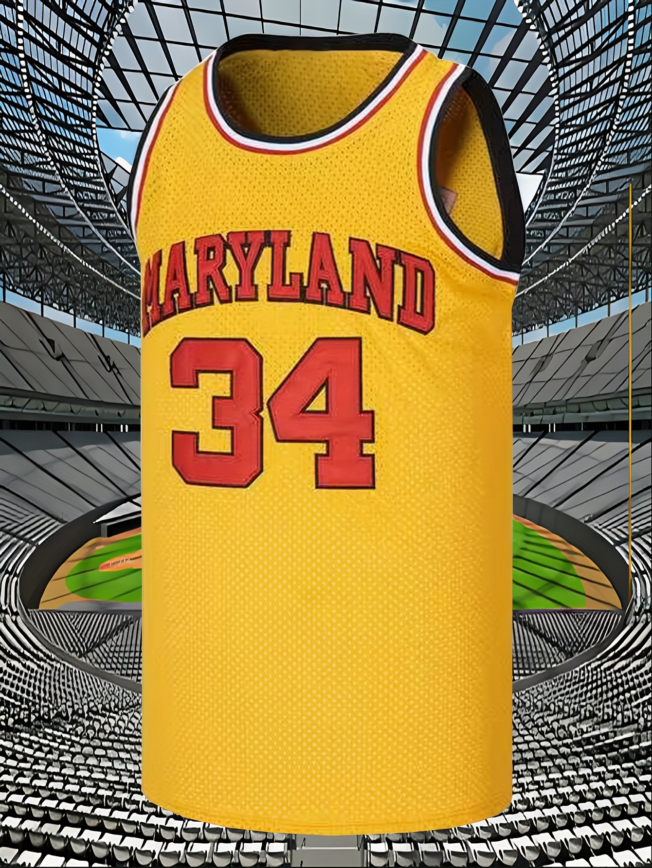 Men's #34 Yellow Basketball Jersey with Red Accents - Embroidered Polyester, Loose Fit, Breathable & Stretch Fabric for Sports, Casual Wear, and Outdoor Activities, Sizes S-XXXL