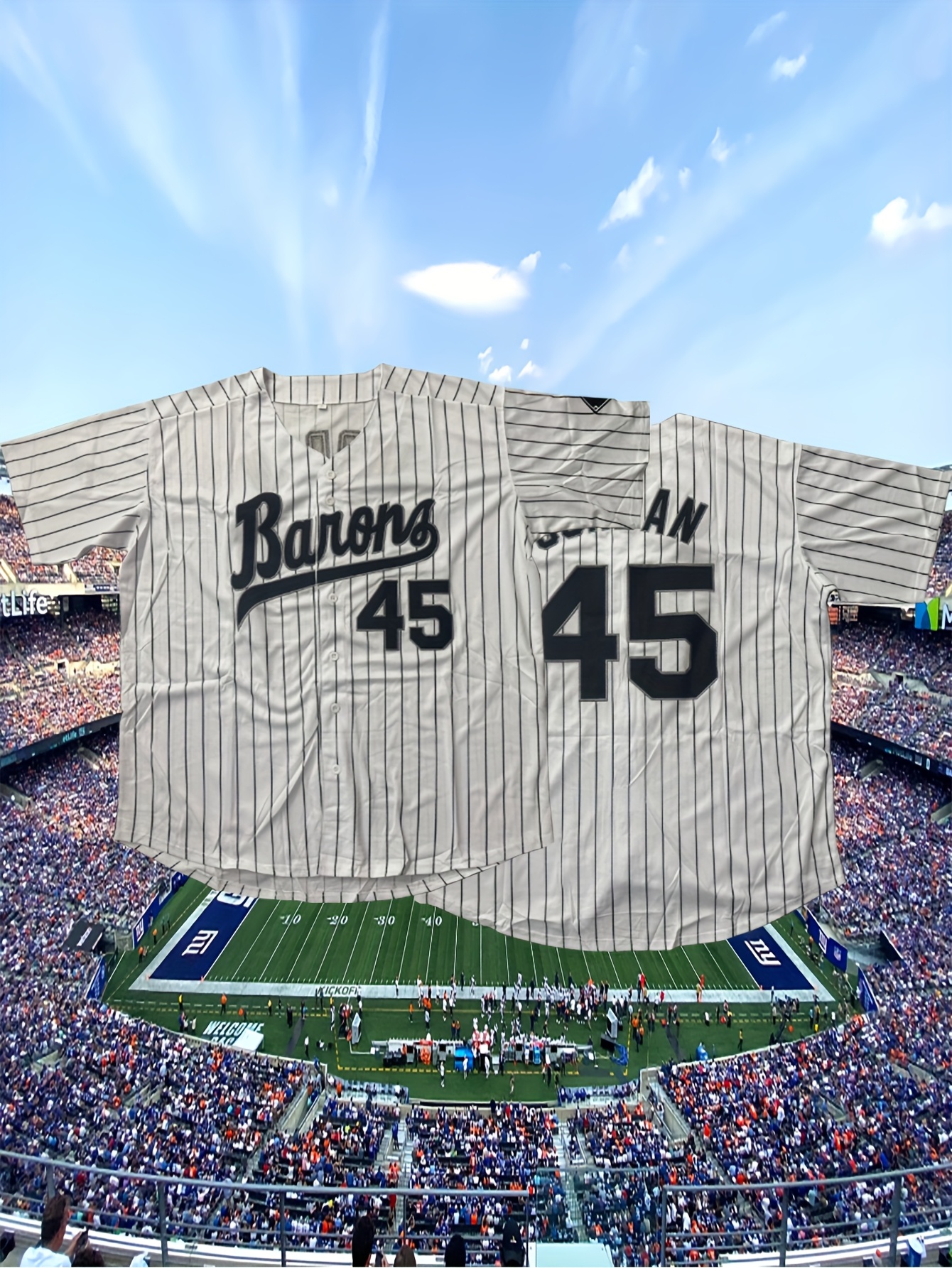 Men's #45 New York Embroidered Baseball Jersey - Classic Striped Design, Breathable Polyester, V-Neck, Short Sleeve Shirt for Training & Competition, Team Apparel | Classic Baseball Jersey | Comfortable Fit