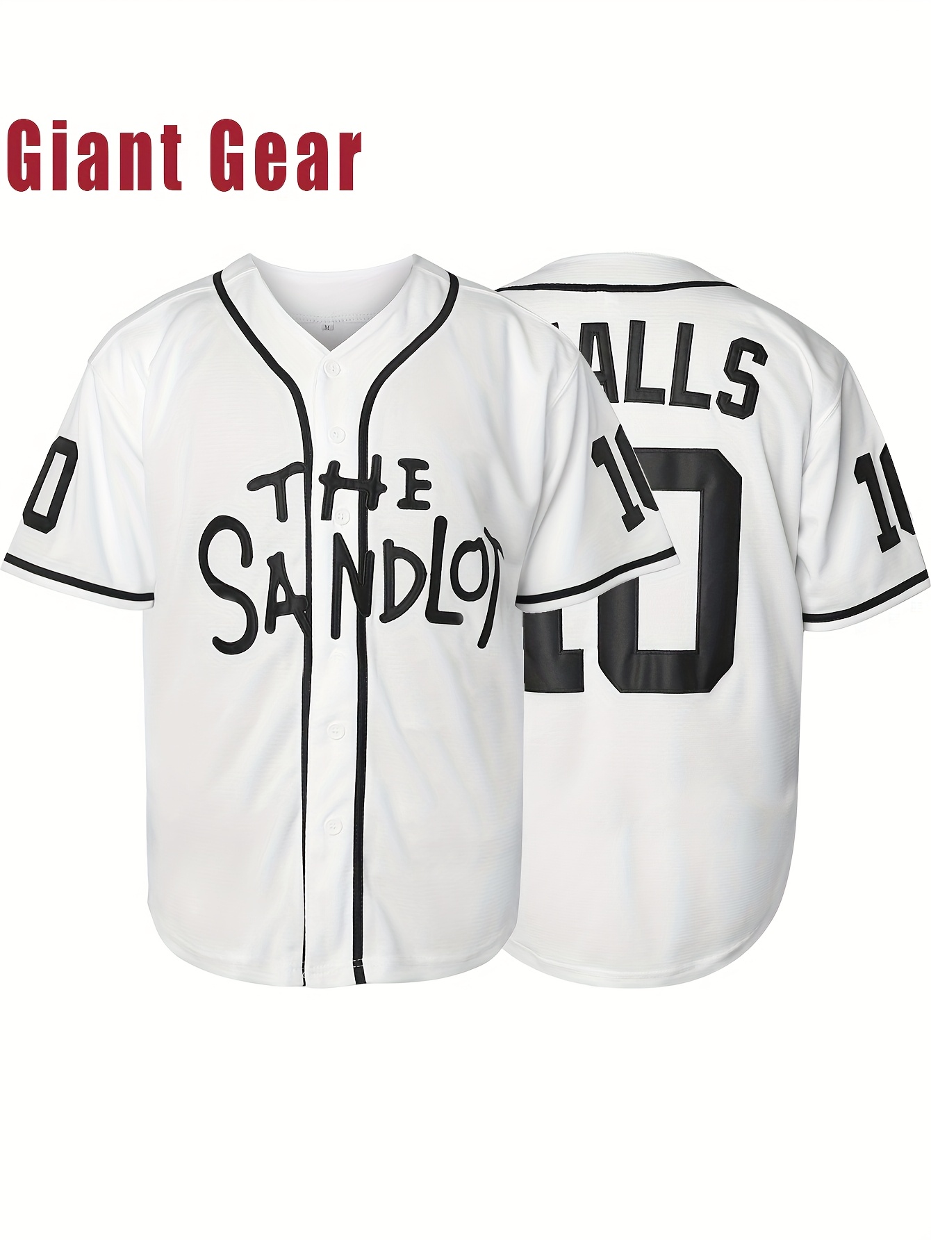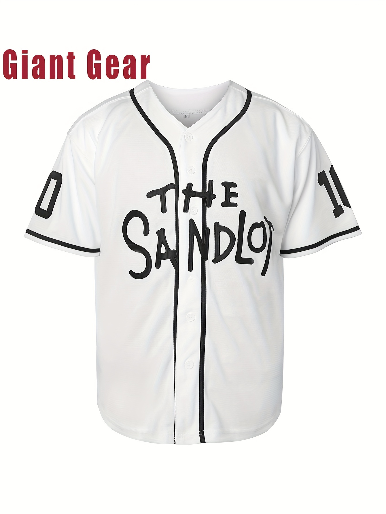 Men's American Baseball Jersey #10 - White V-Neck Loose Fit "The Sandlot" Design, Machine Washable Sportswear for Training, Outdoor & Casual Wear (Spring/Summer/Fall) S-3XL, Breathable Fabric