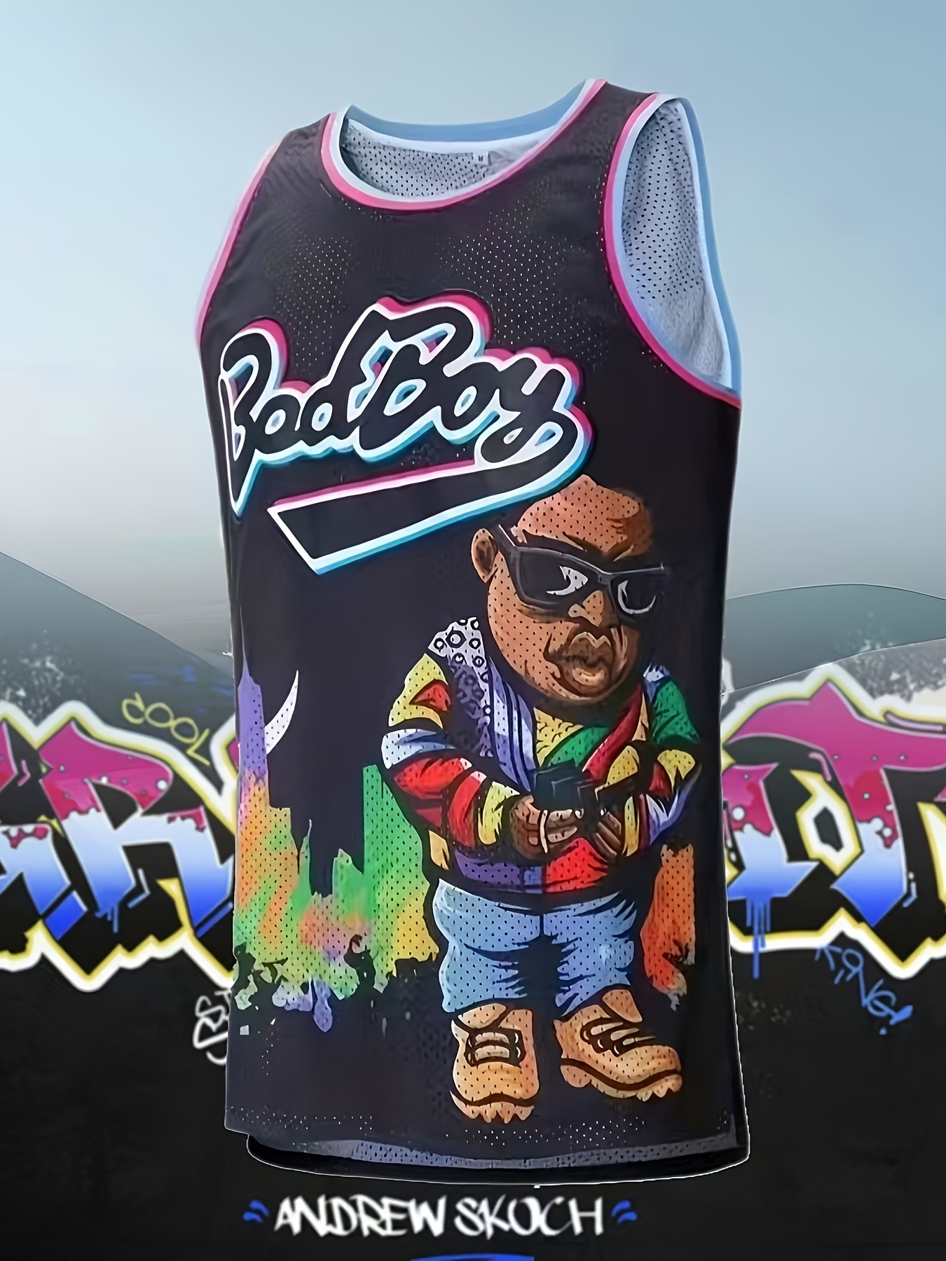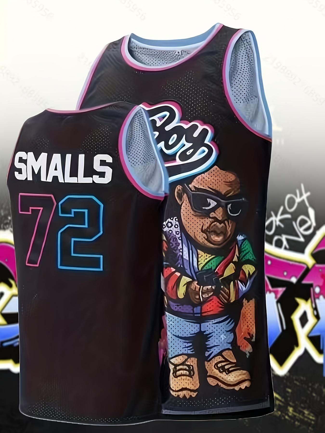 Men's Bad Boy Basketball Jersey 90s Hip-Hop Style - SMALLS 72 Graphic, Breathable Polyester Mesh, Loose Fit Sleeveless Tank Top for All-Season Casual & Sports Wear, Vibrant Design | Moisturewicking Fabric