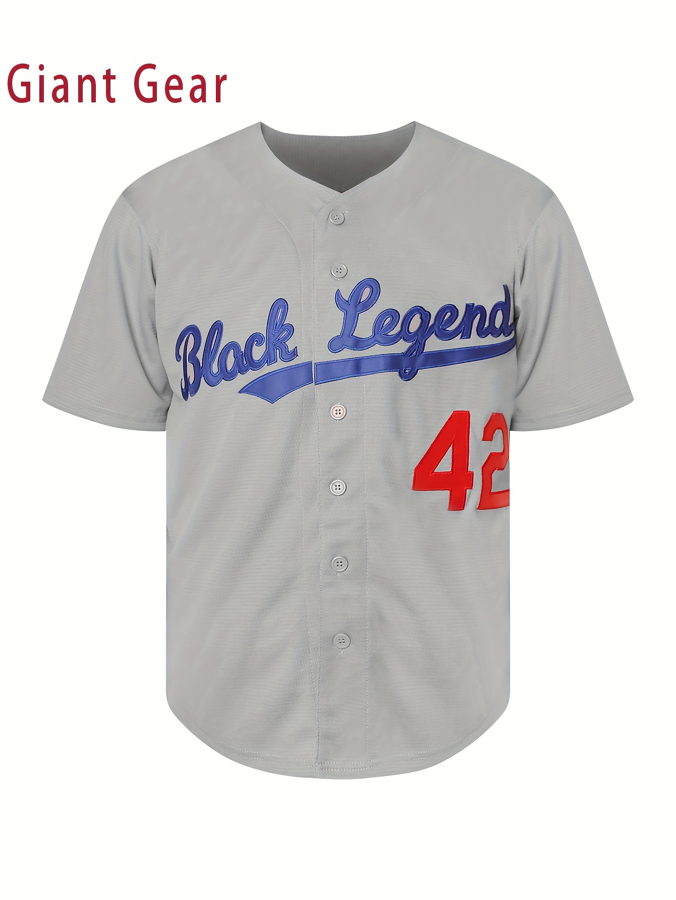 Men'S Baseball Shirt # 42 Grey Embroidered Polyester Baseball Shirt Loose Knitted Fabric Suitable For Spring, Summer, And Autumn Wearing S-3XL
