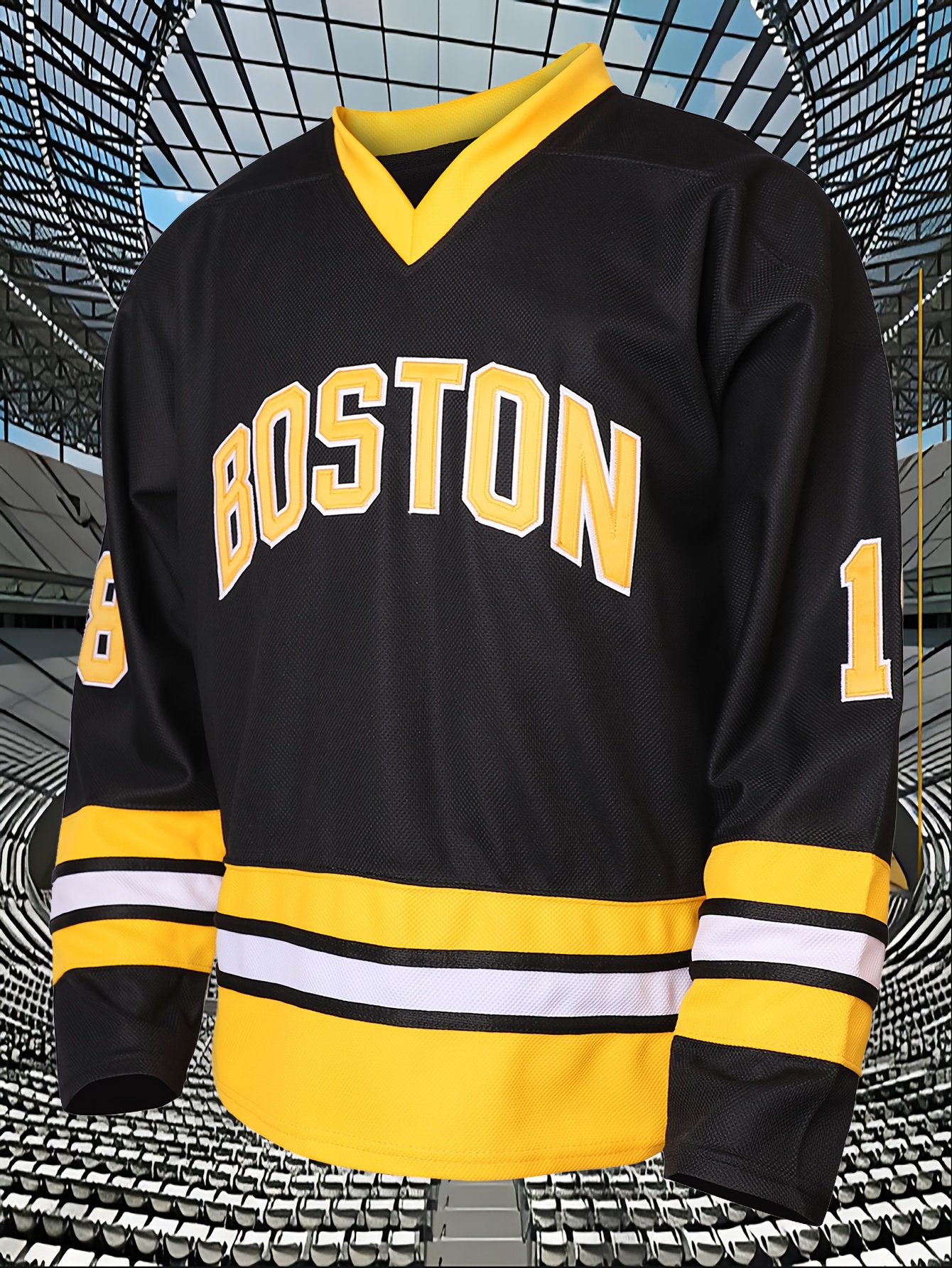 Men's Black Ice Hockey Sweater #18 - Breathable V-Neck, Loose Fit for Competition Training, Streetwear & Outdoor Activities, All Seasons, Sizes S-XXXL, 100% Polyester, Machine Washable, Hockey Jersey
