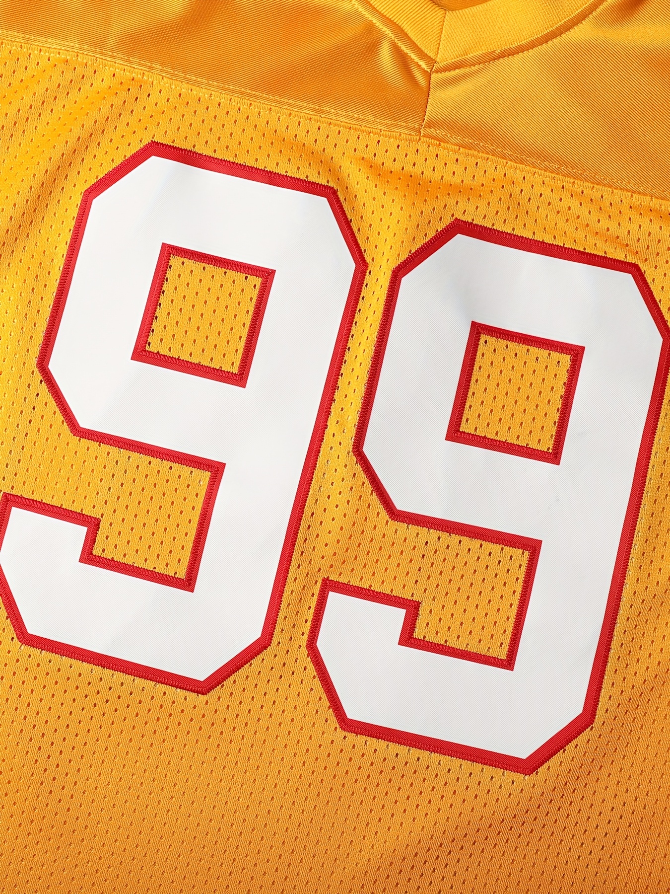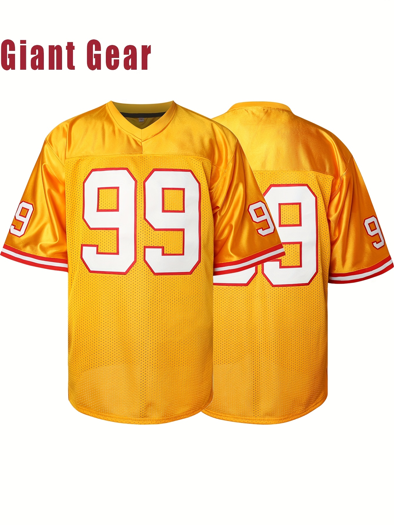 Men's Classic #99 Yellow Embroidered American Football Jersey - Short Sleeve, Breathable Mesh Design, V-Neck, Loose Fit for Training, Competition & Casual Wear, Sizes S-3XL