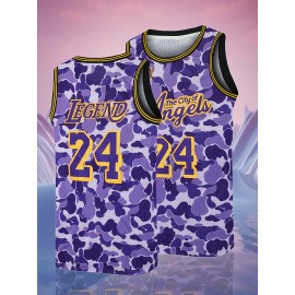 Men'S 24# Embroidered Basketball Jersey - Active Crew Neck Sleeveless Sports Wear - Breathable Polyester Fabric - For Basketball Training & Competition - Ideal Gift For Sports Fans--Four Seasons Wear