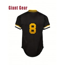 Men's #8 Black Baseball Jersey - Breathable Polyester V-Neck Loose Fit with Embroidered Number 8 & Golden Accents, Machine Washable for Team Sports, Training, Casual Outings (Sizes S-3XL)