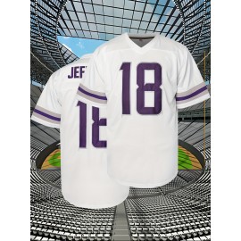 Men's American Football Jersey | V-Neck Polyester Top | Purple Number 18 | Multi-Size S-XXXL | Machine Washable & Dry Clean Safe | Ideal for Sports, Casual & Outdoor Activities | Breathable & Comfortable | Perfect for Training, Running, Hiking & Parties