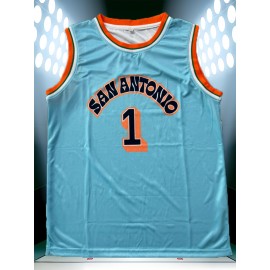 Men'S Basketball Suit # 1 Sky Blue V-neck Embroidered Polyester Loose Micro Elastic Fabric S-XXXL