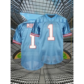 Men's Blue V-Neck Rugby Sweatshirt #1 - Embroidered Polyester Loose Fit Knit Jersey for Sports & Casual Wear, Sizes S-3XL, Breathable & Durable for Team Sports, Training, and Everyday Use