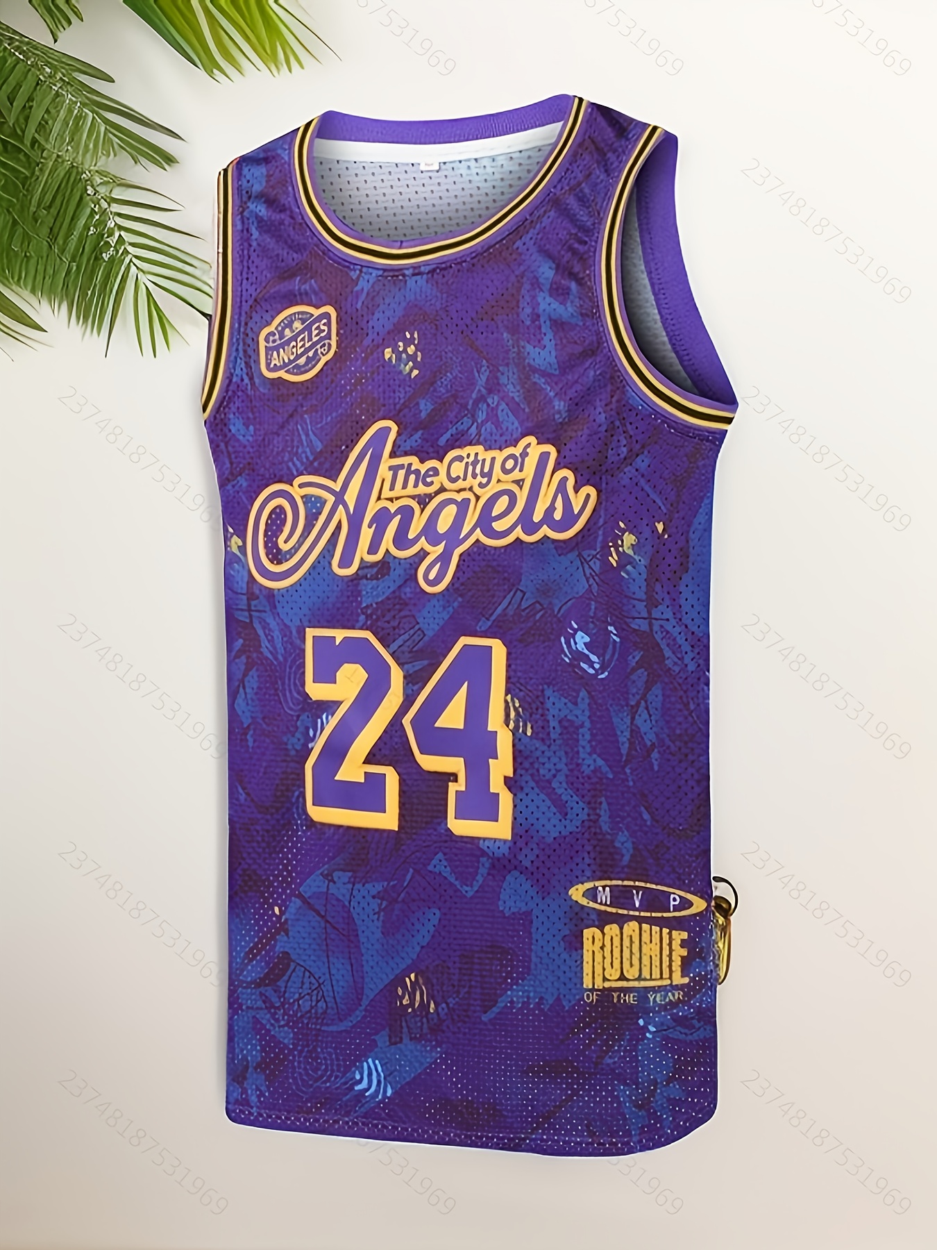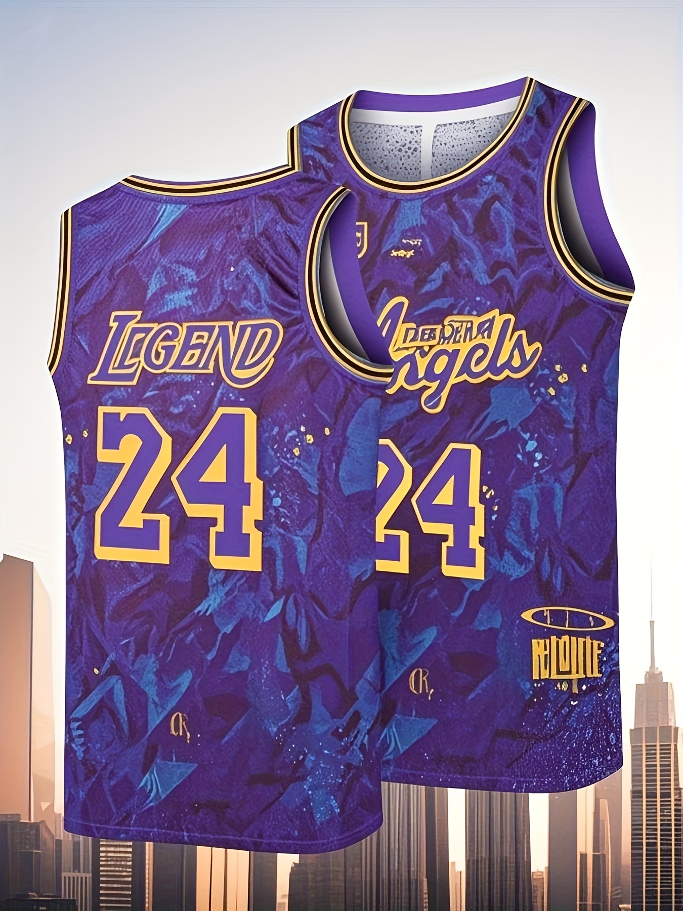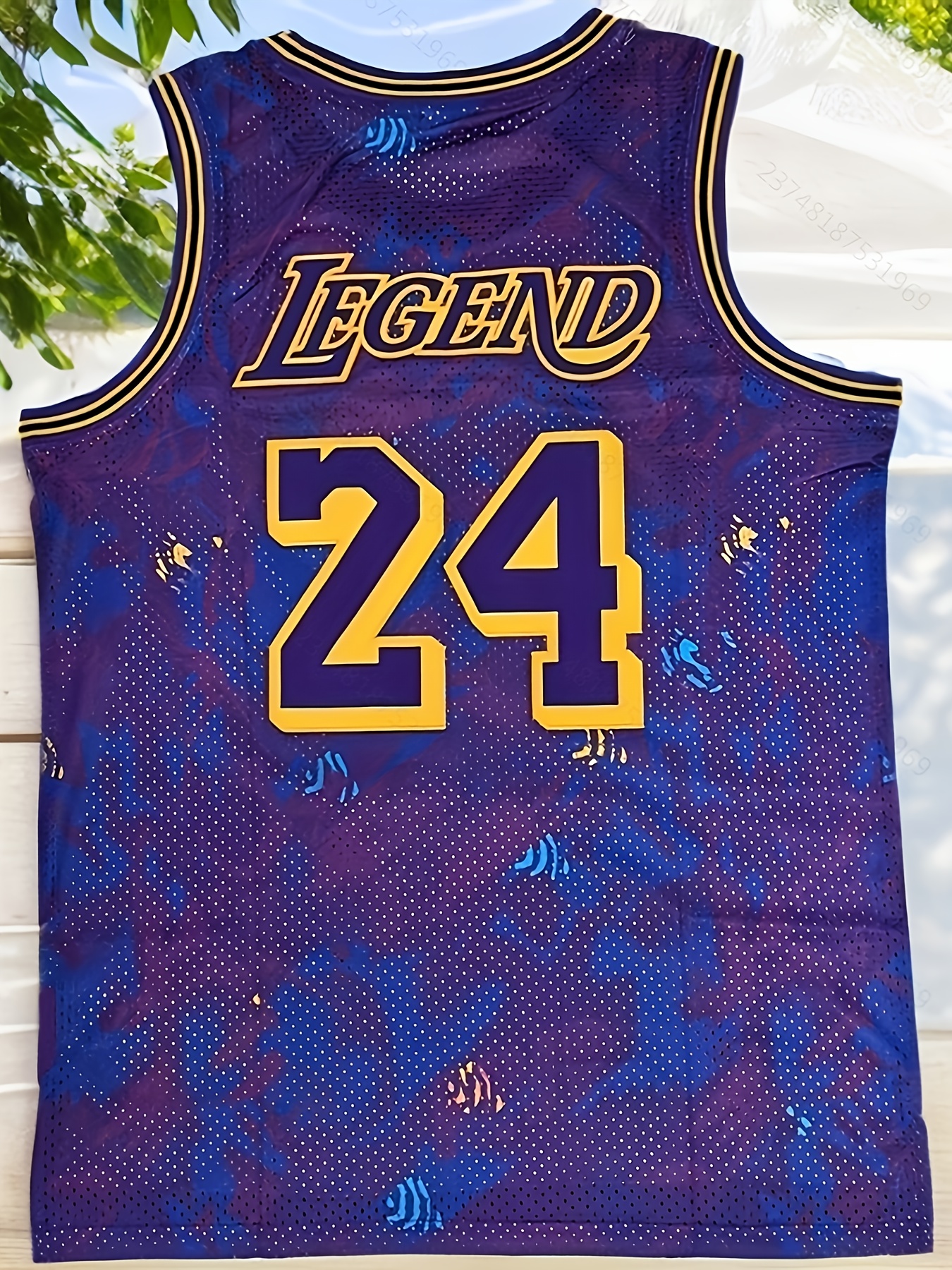 Men'S Basketball Jersey #24 - Purple & Yellow Floral Print, Sleeveless Athletic Tank Top For Parties, Performances, And Sports Events, Casual Wear Jersey.