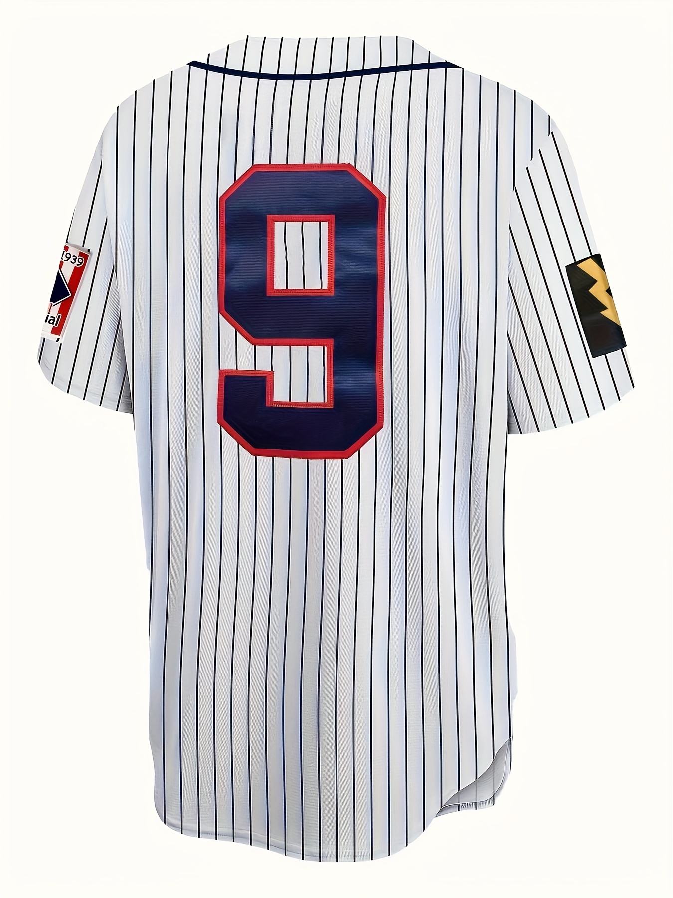 Men'S White Striped # 9 Baseball Shirt, Classic Letter Embroidery Design, Button Style Short Sleeved Breathable