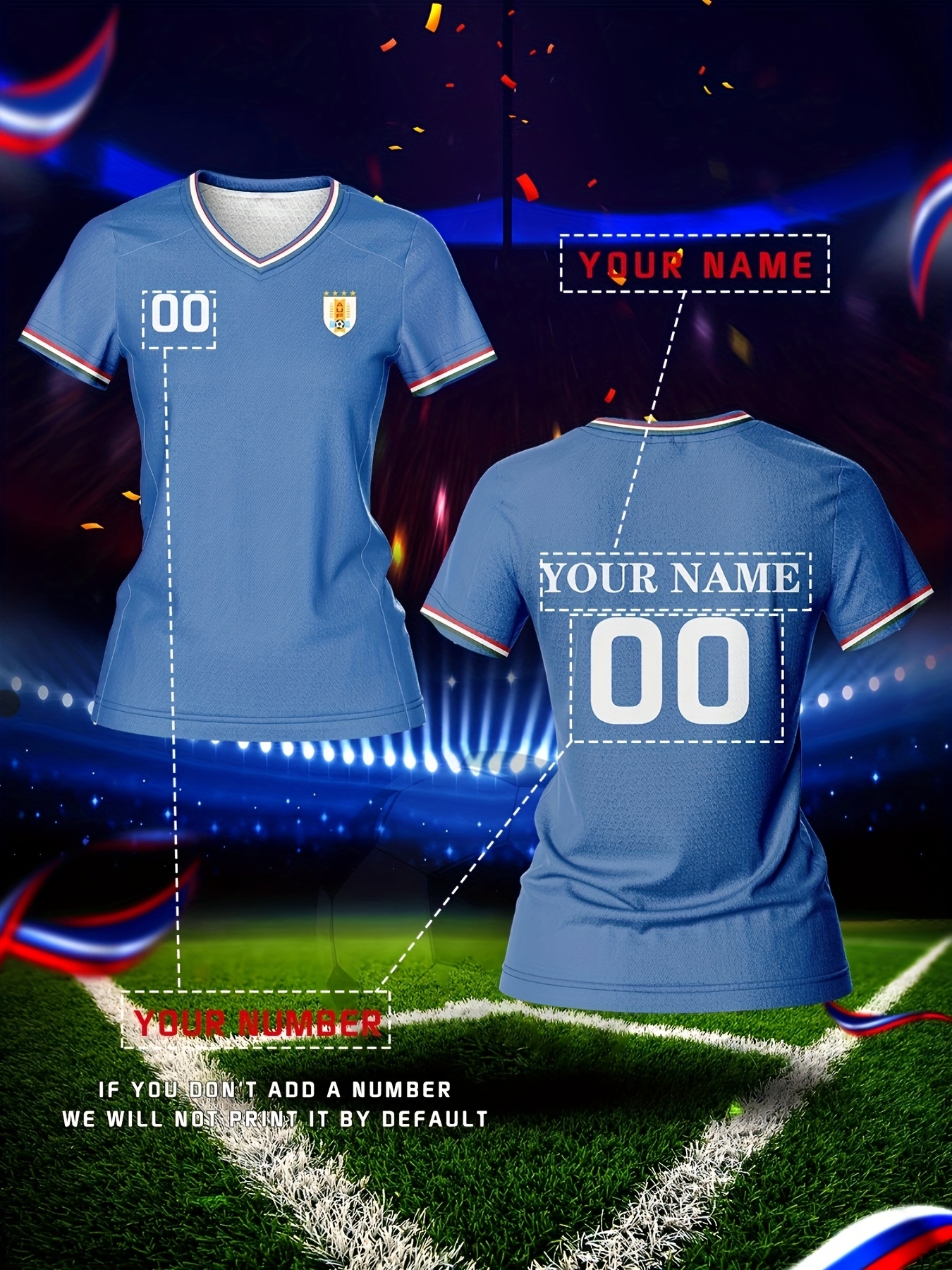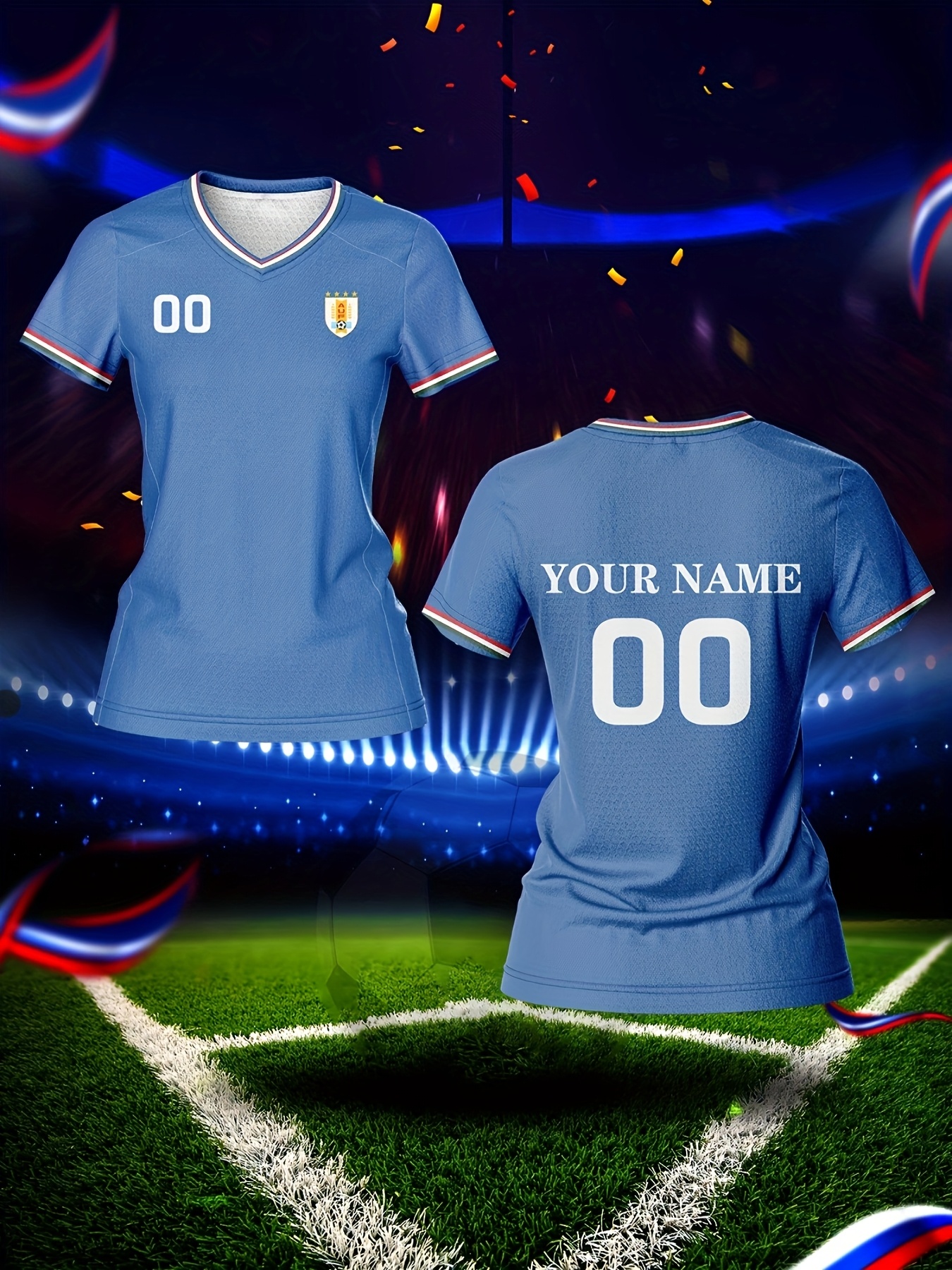 Custom Name & Number Women's V-Neck Football Jersey - Breathable Quick-Dry Fabric, Team Training & Casual Wear, All-Over Print Design, Regular Fit for Spring/Summer/Fall, Comfortable Sports Apparel