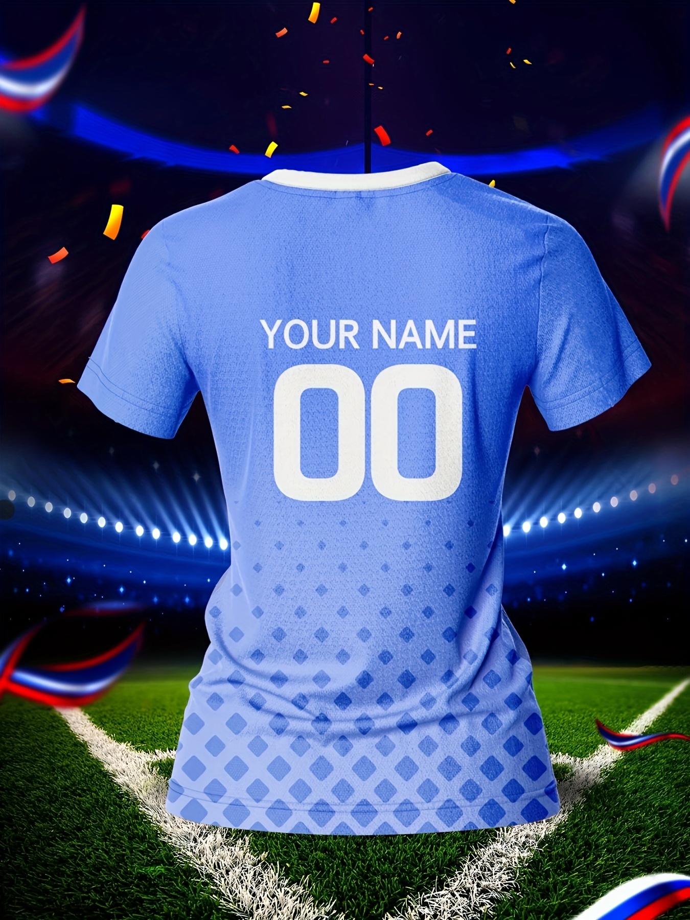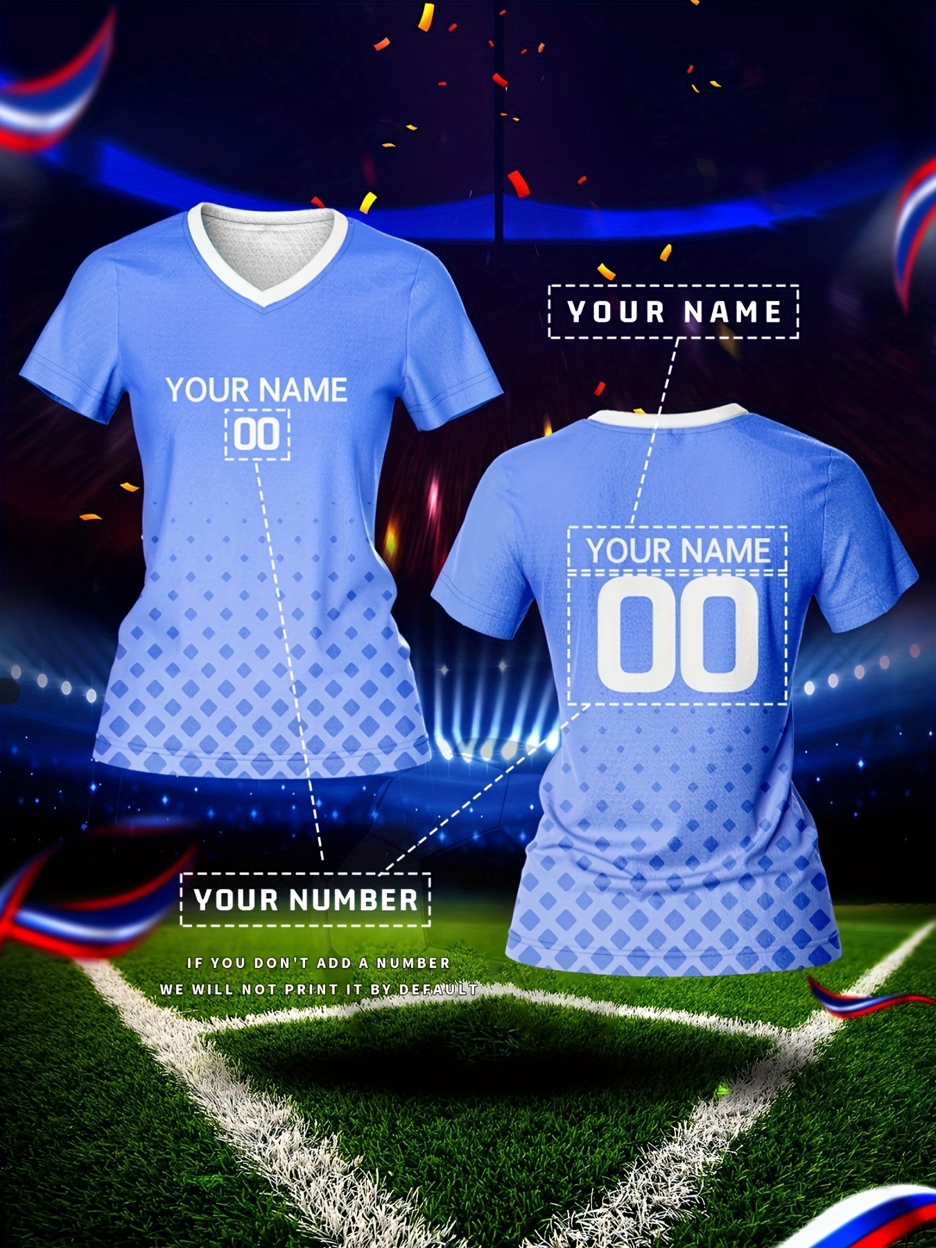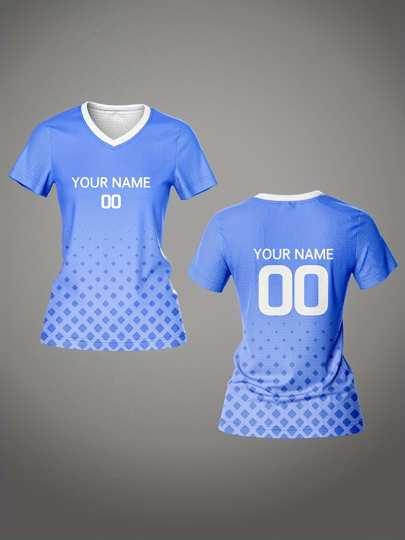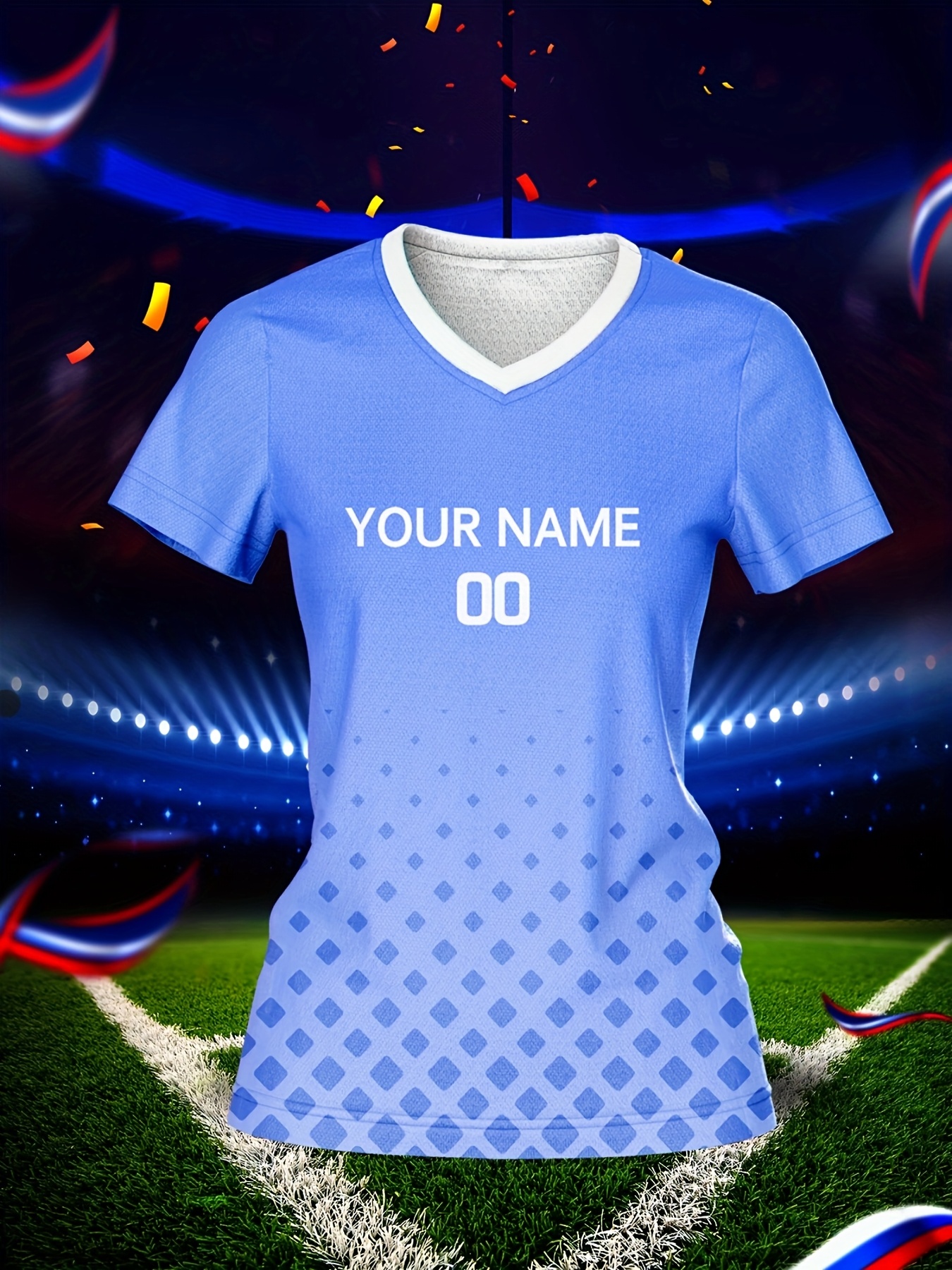 Customizable Women's V-Neck Football Jersey - Light Blue, Personalized Name & Number, Breathable Polyester, Quick-Dry for Sports, Training & Casual Wear