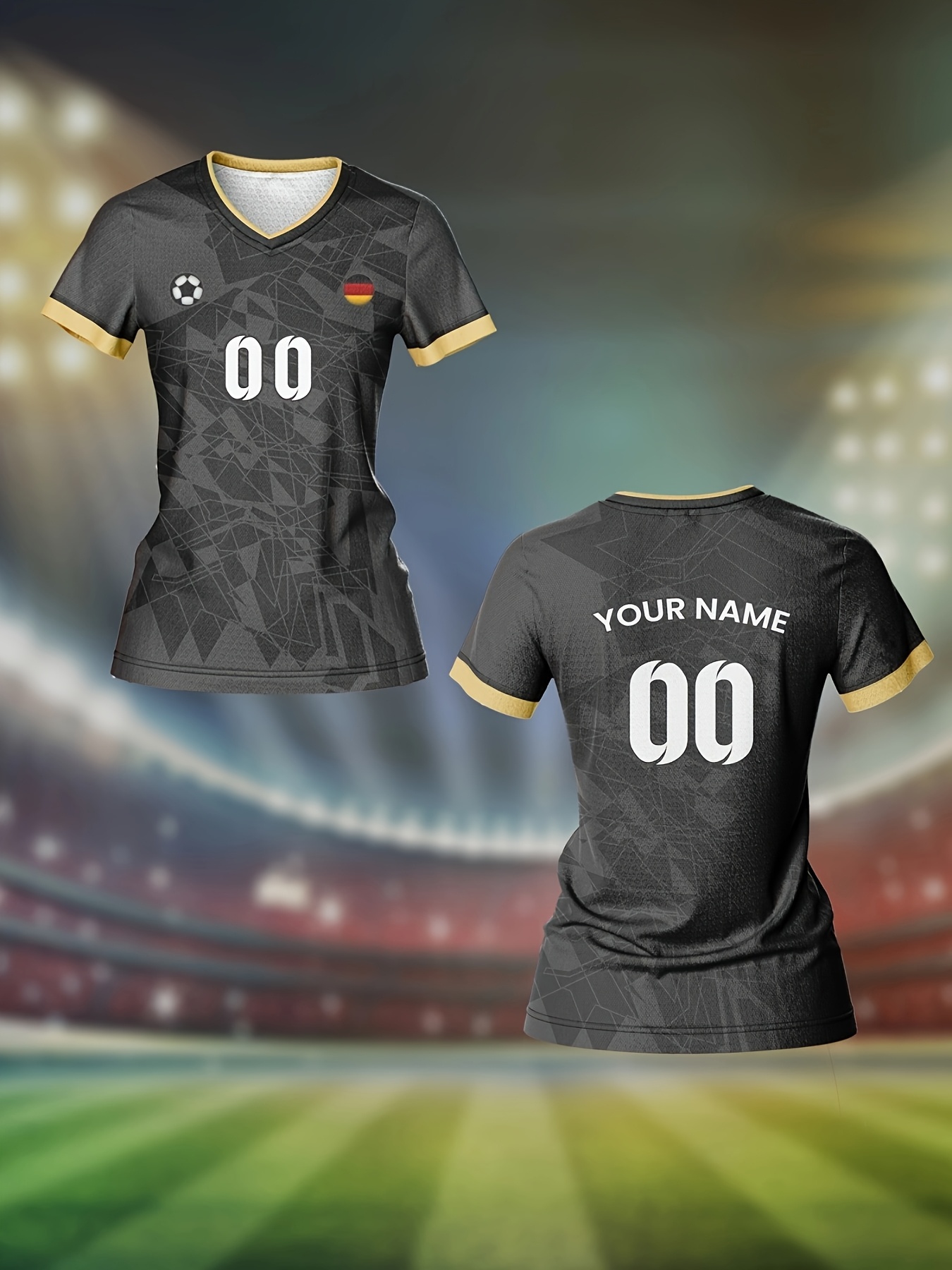 Customizable Women'S V-Neck Soccer Jersey - Personalized Name & Number, Breathable Quick-Dry Fabric for Team Training, Fitness & Casual Wear, Black with Red & White Design, Spring/Summer/Fal