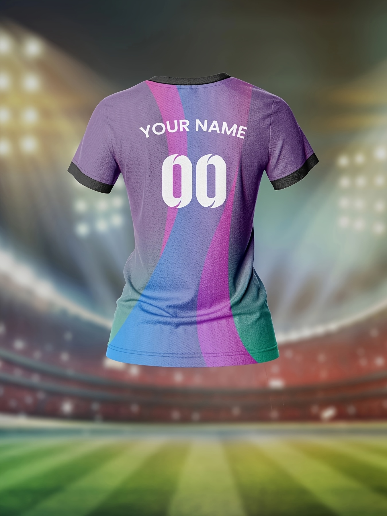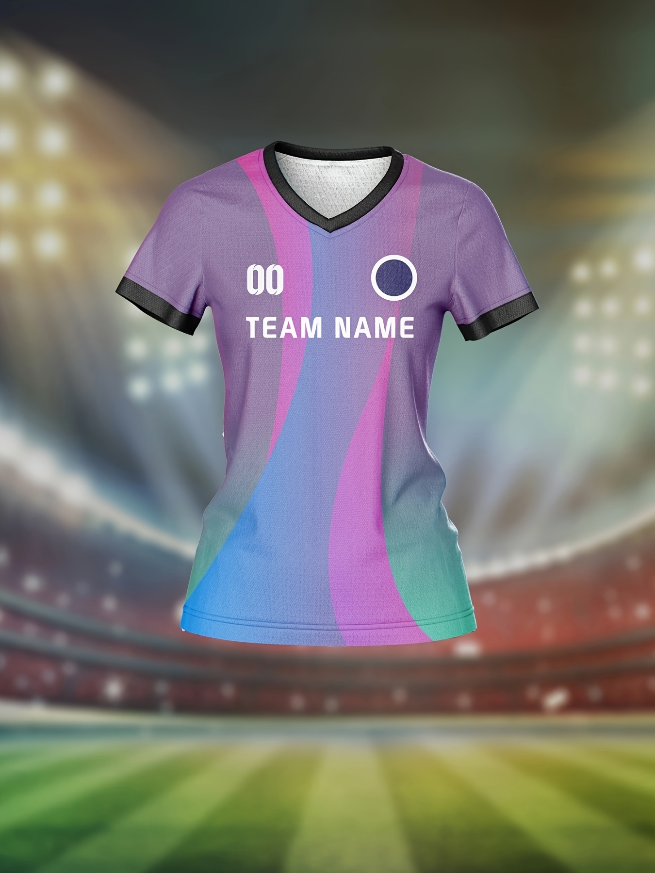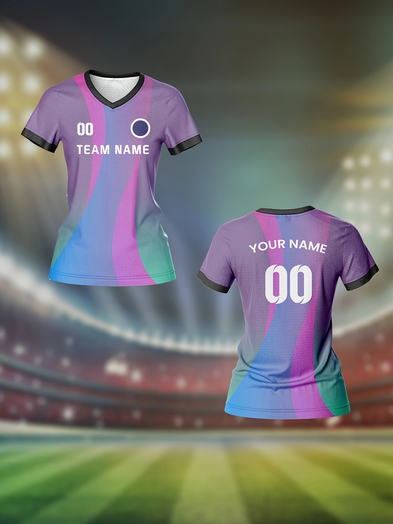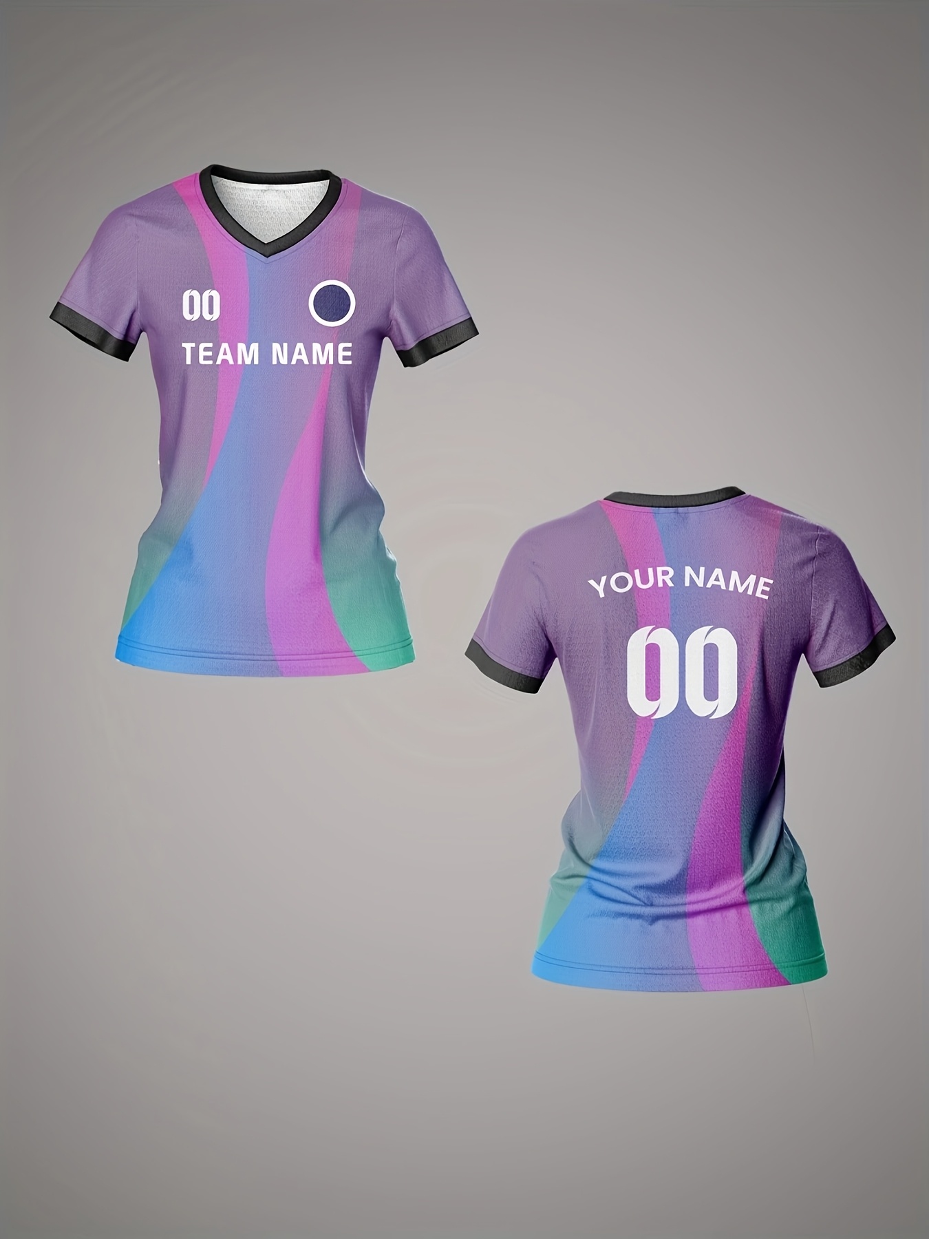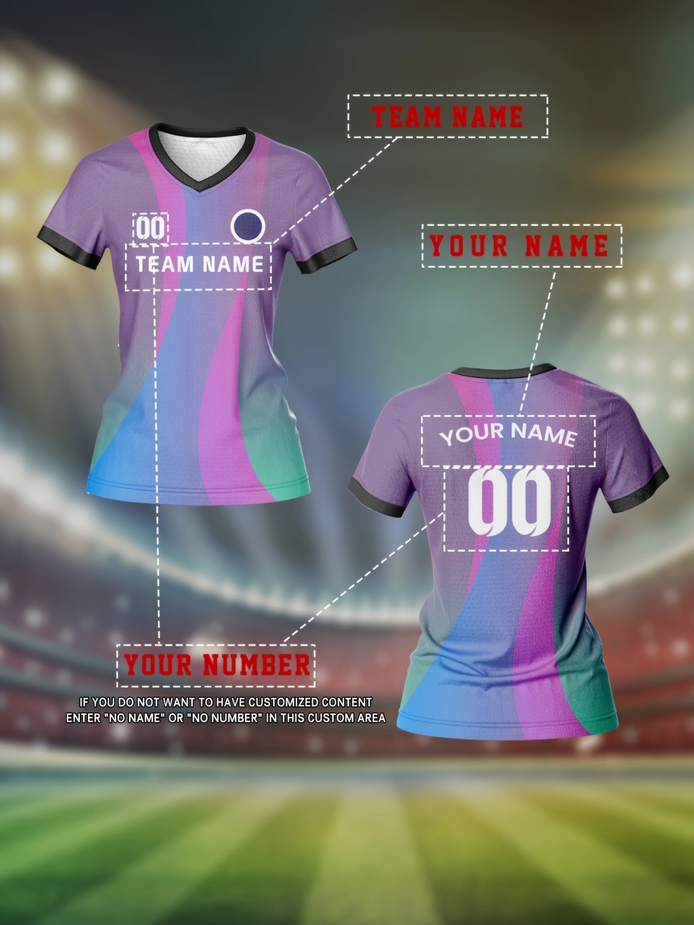 Customizable Women'S V-Neck Soccer Jersey - Personalized Team Name & Number, Breathable Quick-Dry Fabric for Training, Fitness & Casual Wear, Colorful Striped Design with Heart Rate Monitor, Seasonal Versatile Top|Sport Specific Apparel|Comfortable Fi