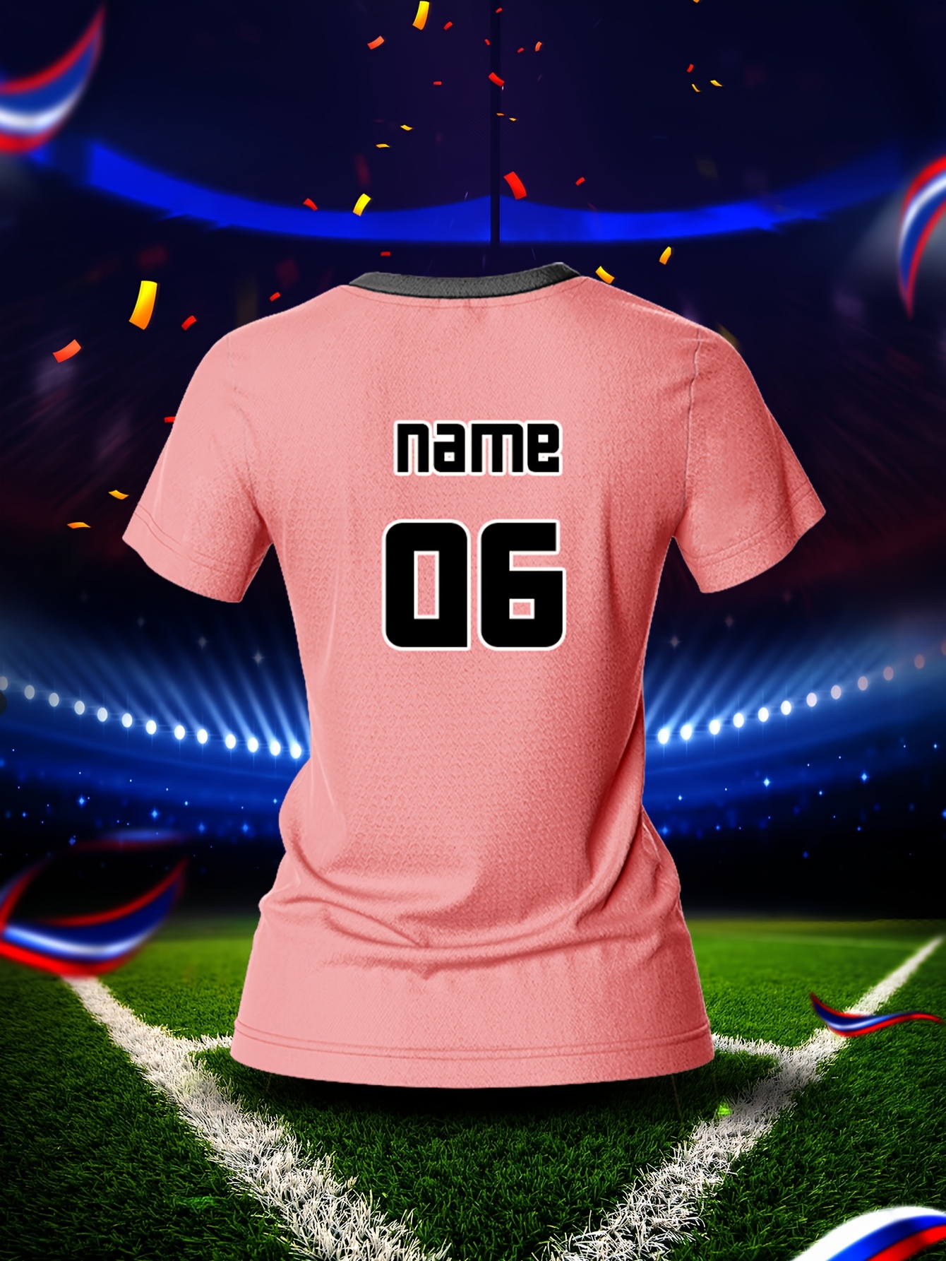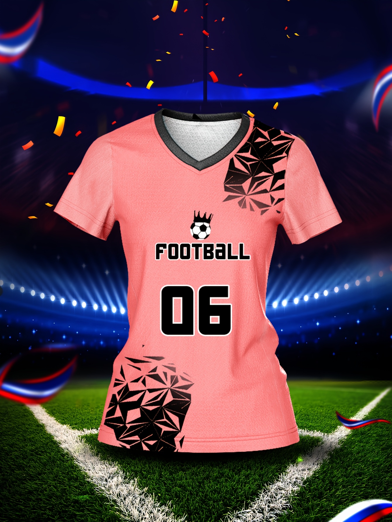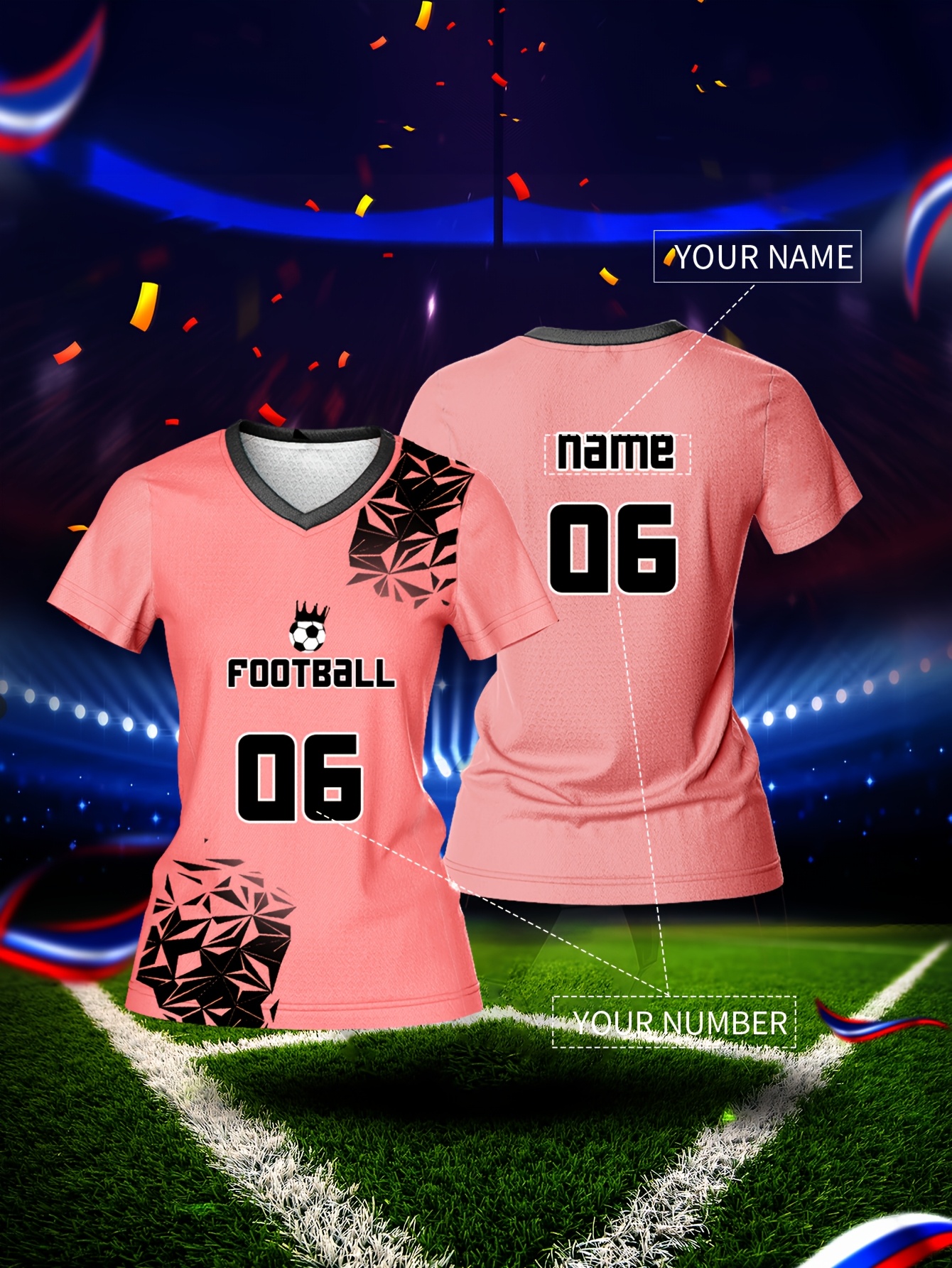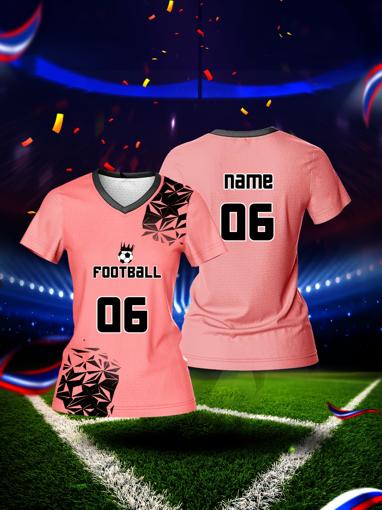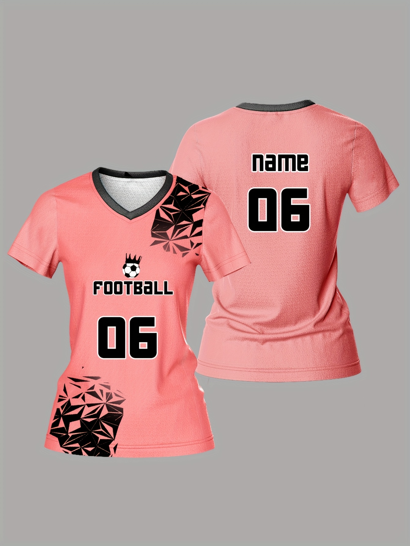 Customized Name & Number Women's V-Neck Football Jersey - Breathable Quick-Dry Moisture-Wicking Pink/Black with Football Graphic & Number 06 Design for Team Training, Fitness, Casual Wear, Football Accessories, Comfortable Fit