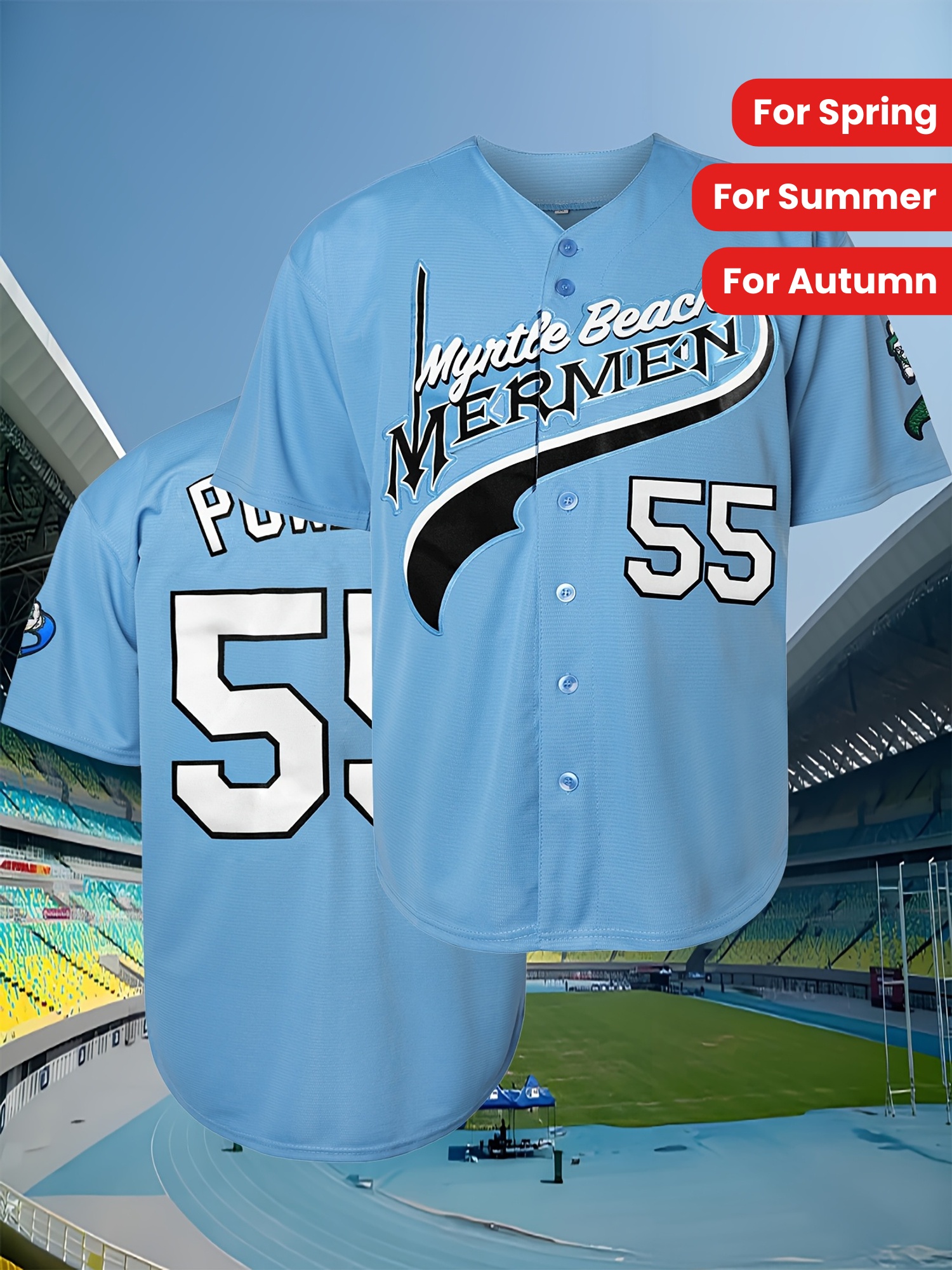 Youth Baseball Jersey # 55 Blue Sports Shirt Suitable For Teenagers To Wear In Spring, Summer, And Autumn