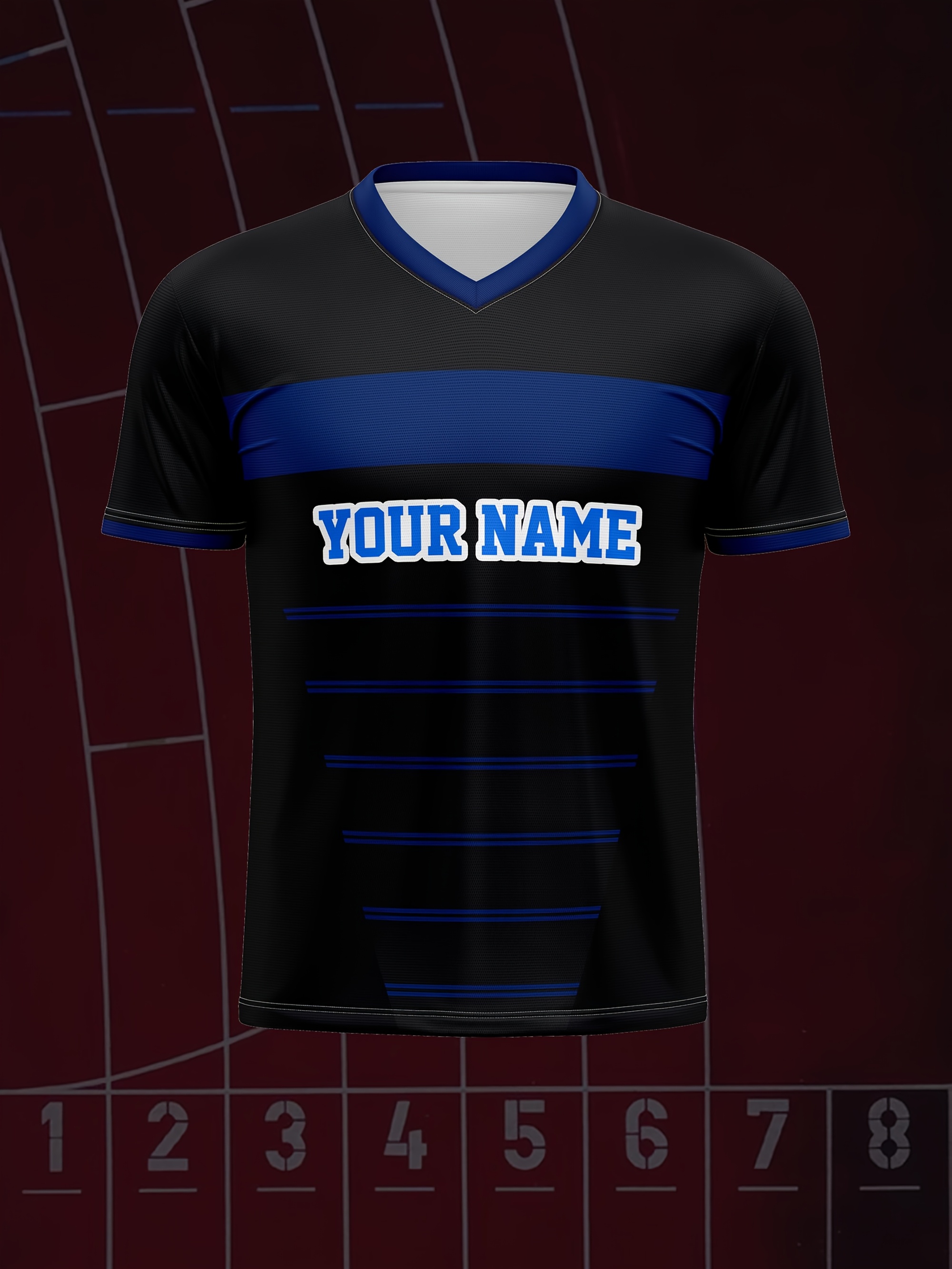 1pc Customizable Kids Football Jersey - Polyester V-Neck Soccer Shirt with Personalized Name & Number, Medium Stretch, All-Over Print, Casual Sports Top for Boys & Girls, Perfect for Training, Beach, Weekend - Knit Fabric, Regular Fit