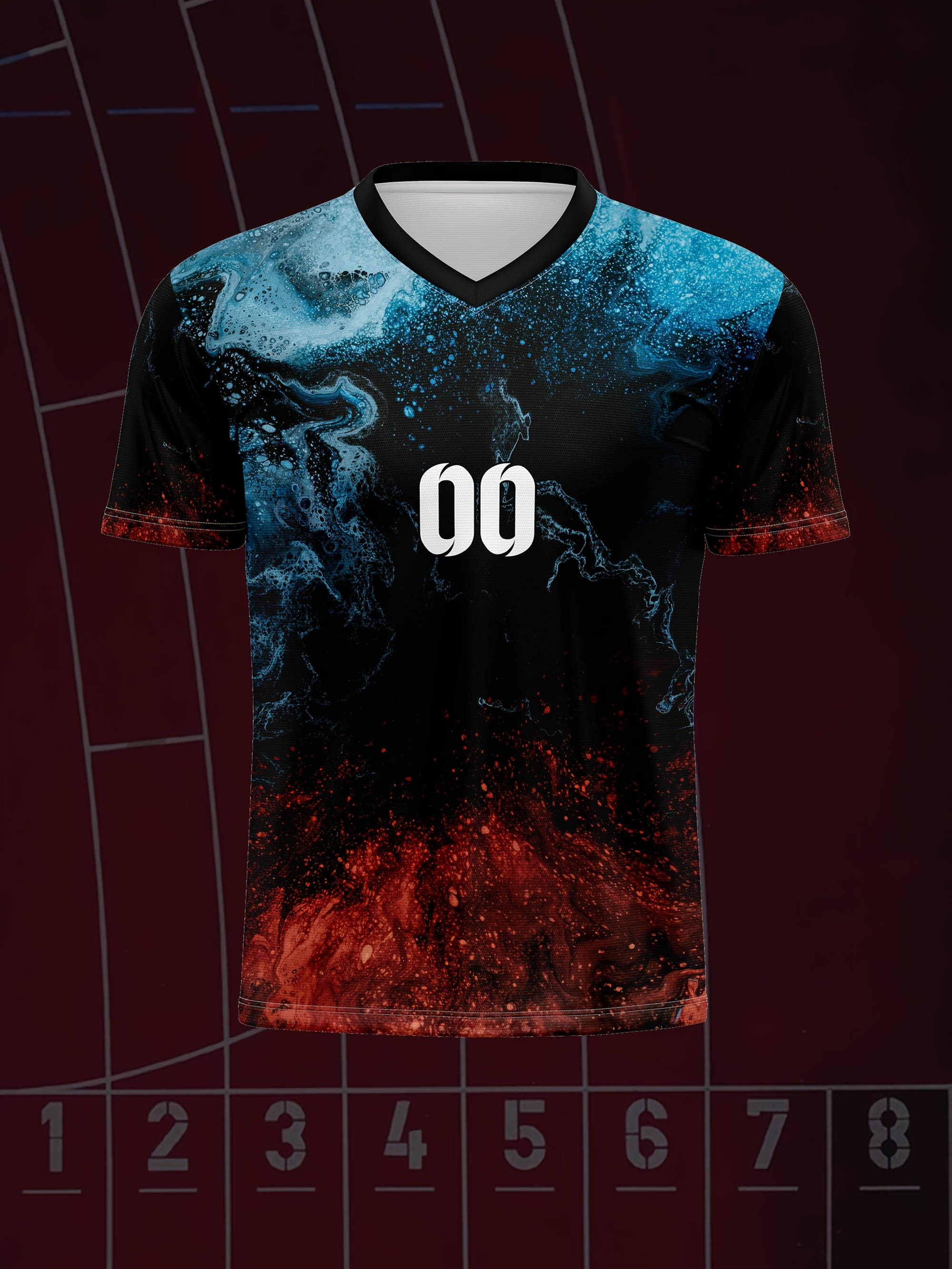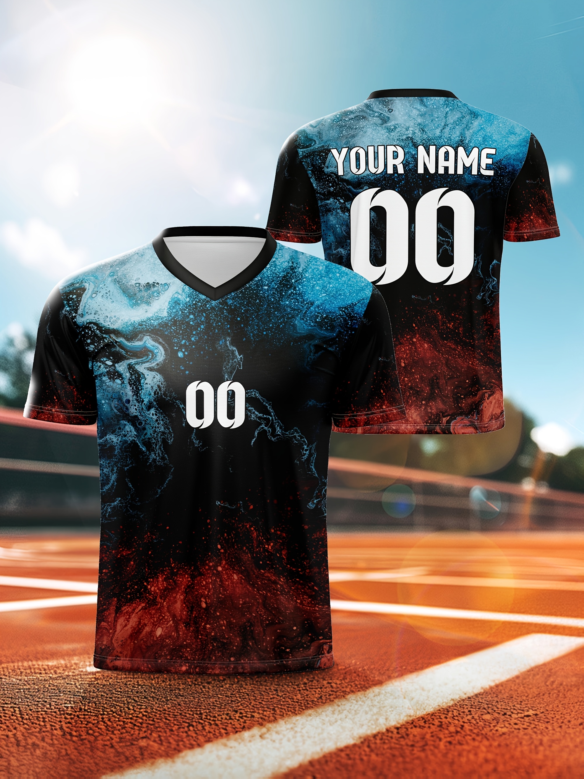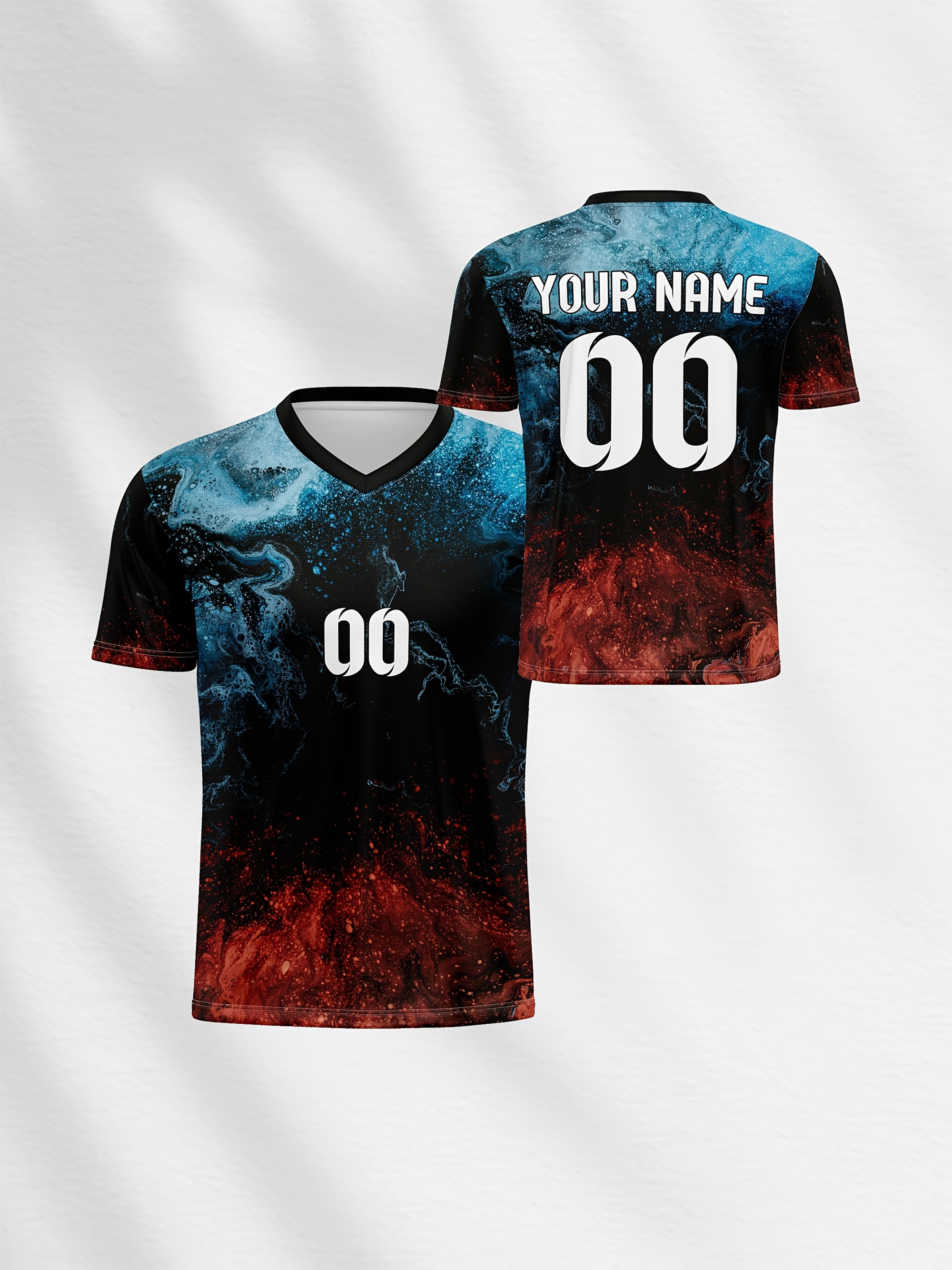 1pc Customizable V-Neck Soccer Jersey for Kids - 100% Polyester, All-Over Print, Personalized Name & Number, Medium Stretch, Regular Fit, for Boys & Girls, Ideal for Sports, Casual Wear, Training, Beach, Birthday - Spring/Summer/Fall