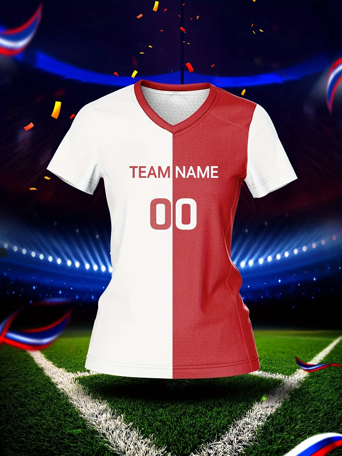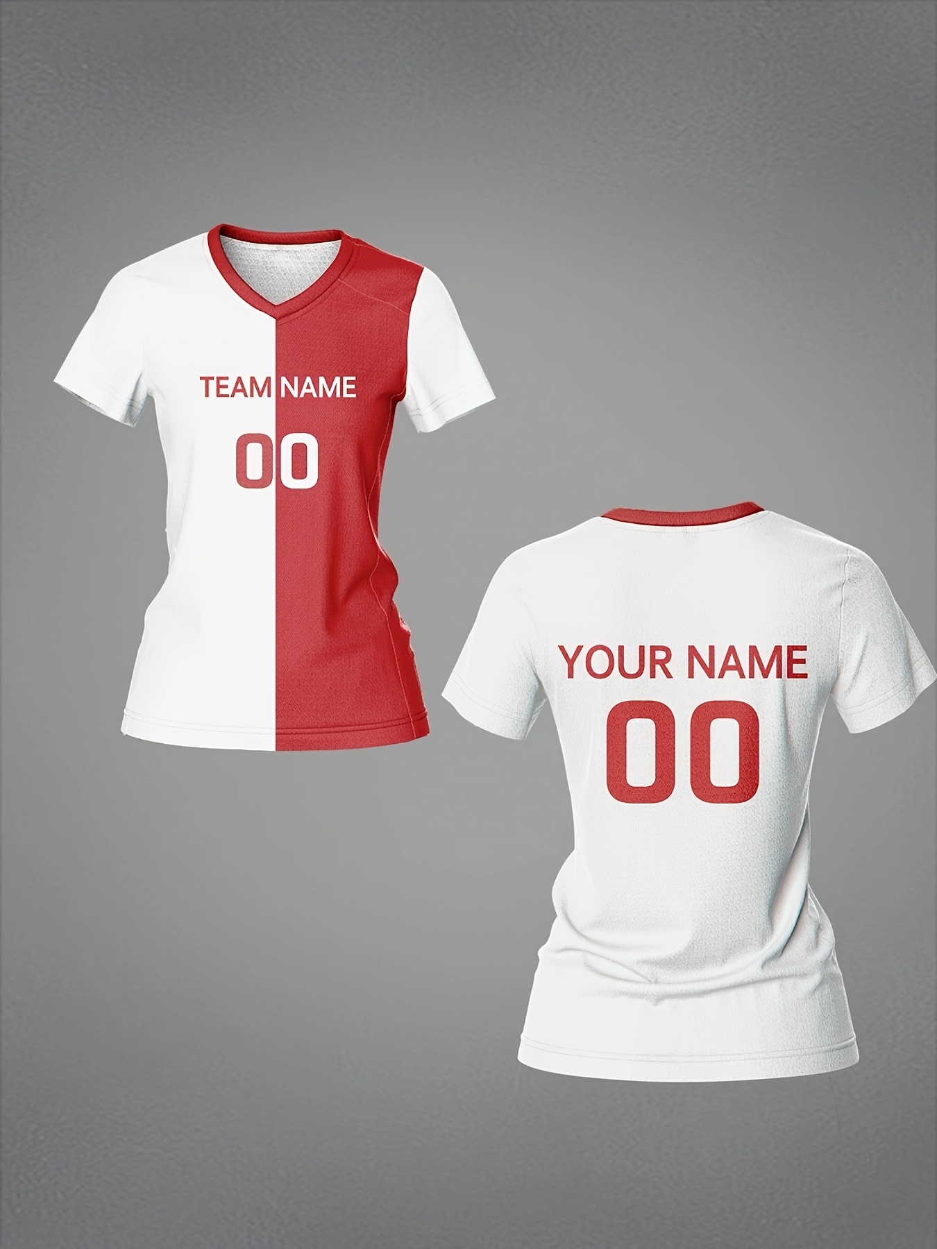 [Comfortable] Customizable Women's V-Neck Soccer Jersey - Personalized Name & Number, Breathable Polyester, Quick-Dry Athletic Top for Team Training, Sports Fitness & Casual Wear