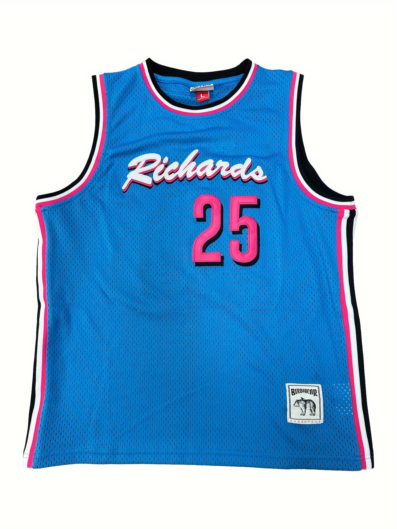 Girls' #25 Blue & Pink Basketball Jersey - High School Sport Uniform for Ages 3-14, Breathable Polyester, "RICHARDS" & Number, Round Neck, Ideal for Training & Casual Wear, Youth Sportswear|Casual Hstyle| Details
