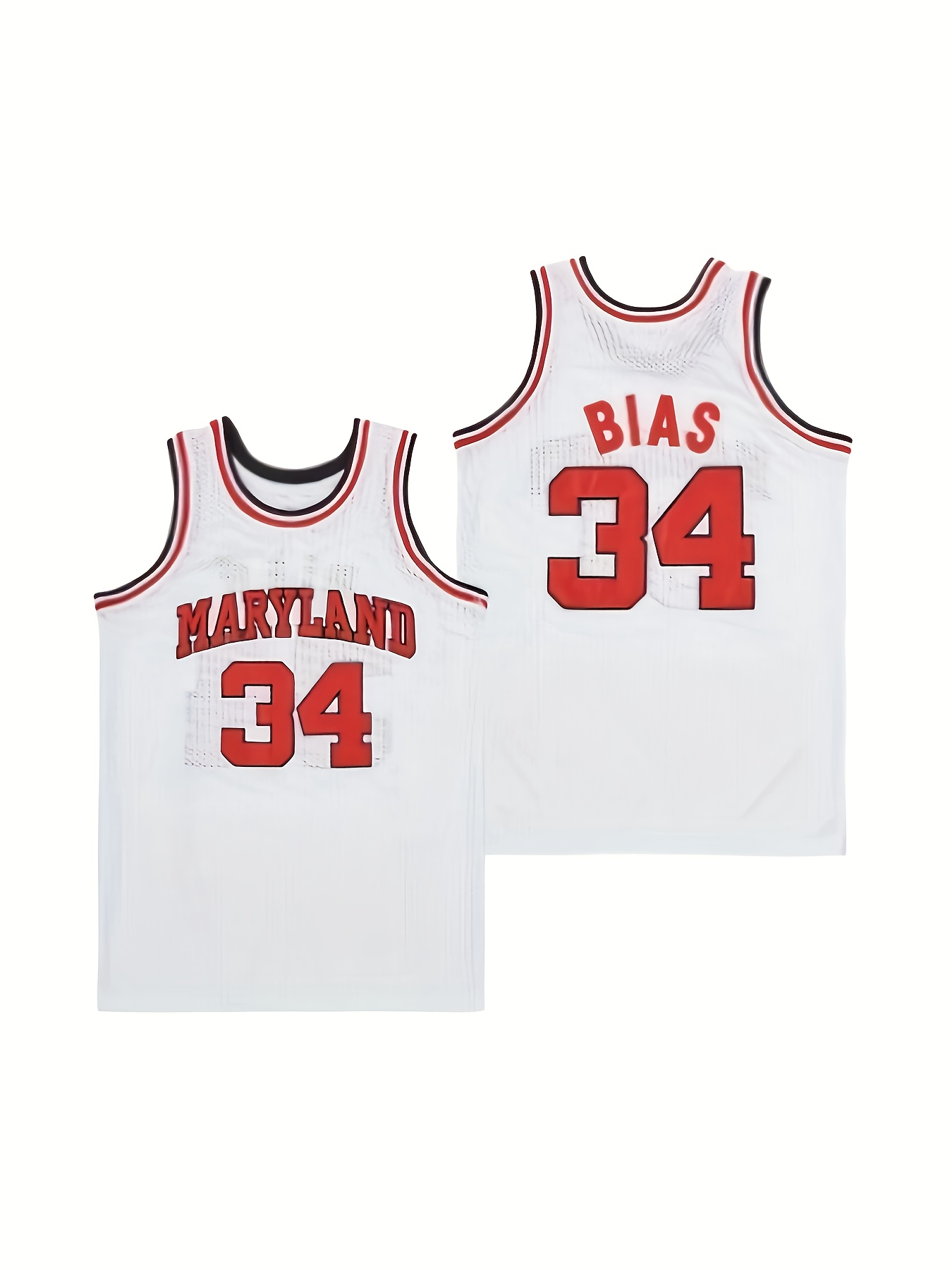 Len Bias #34 Maryland Basketball Jersey - Vintage Style, Breathable & Moisture-Wicking Sleeveless Tank Top for Men & Women, Perfect for Sports, Casual Wear, and Parties