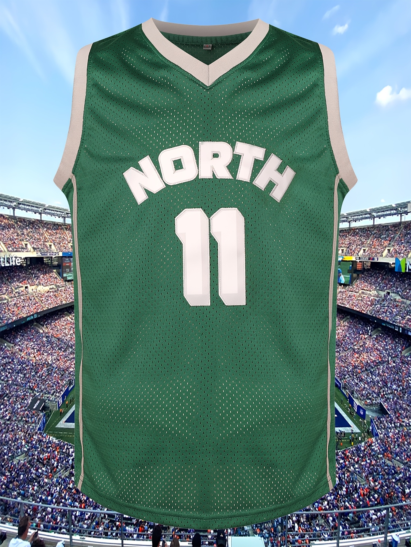 Men's #11 Green Basketball Jersey, V-Neck Sleeveless Sports Uniform, Polyester, Machine Washable, Ideal for Training & Team Activities, Sizes S-XXXL