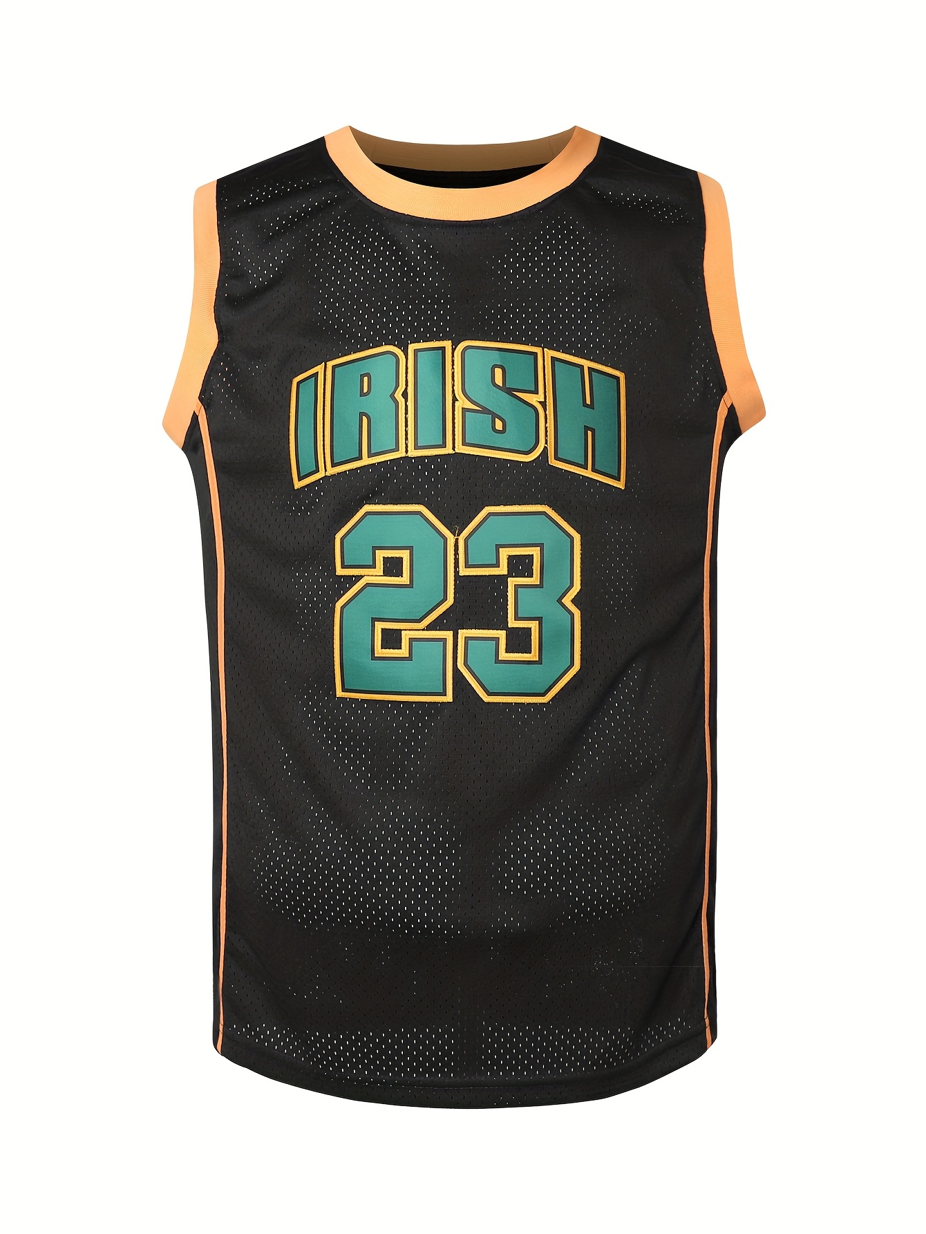 Men's #23 Irish Basketball Jersey - Black & Yellow Sleeveless Tank Top, Breathable Mesh Fabric, Moisture-Wicking, Loose Fit for Sports, Parties & Casual Wear