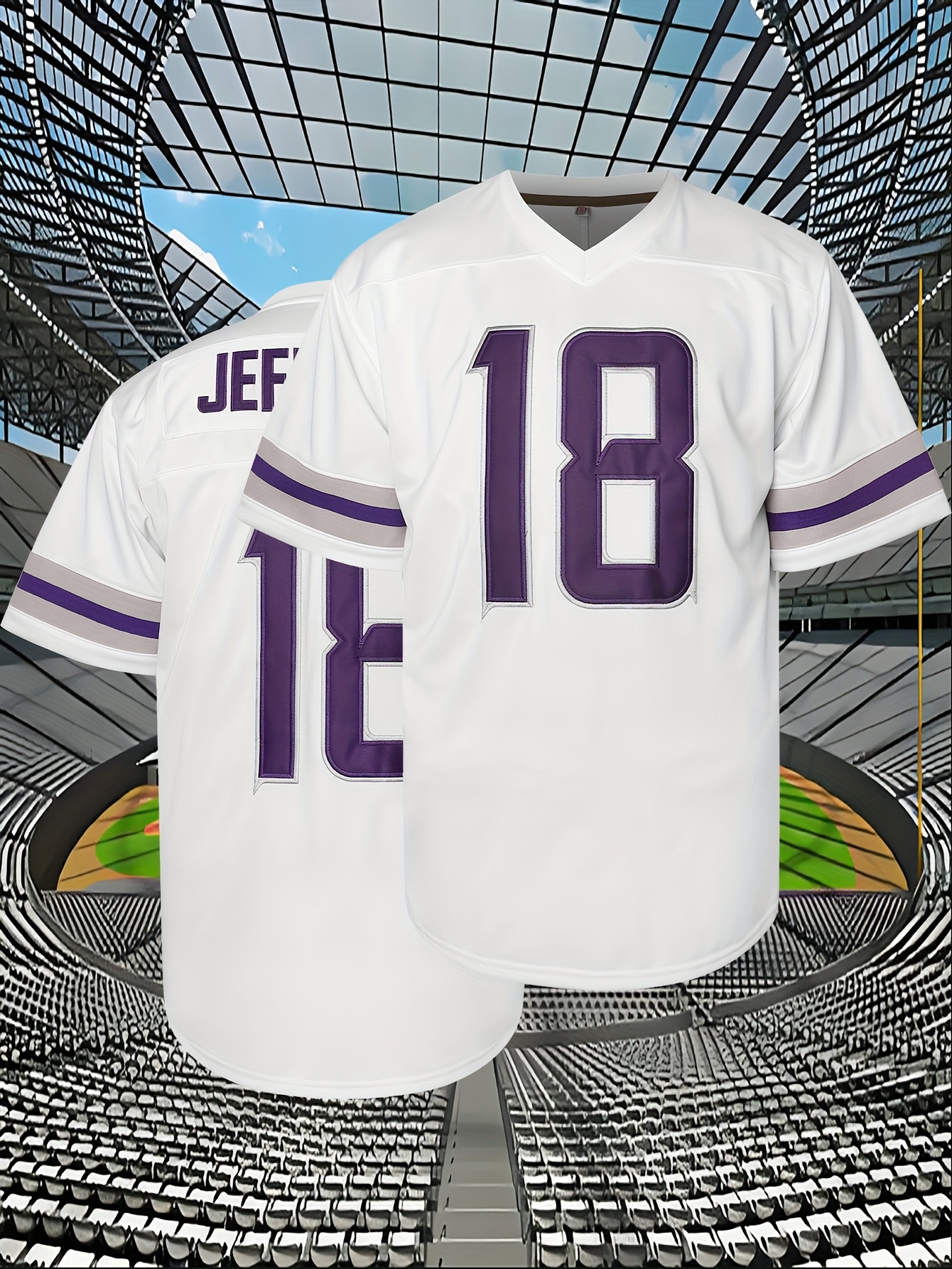 Men's American Football Jersey | V-Neck Polyester Top | Purple Number 18 | Multi-Size S-XXXL | Machine Washable & Dry Clean Safe | Ideal for Sports, Casual & Outdoor Activities | Breathable & Comfortable | Perfect for Training, Running, Hiking & Parties