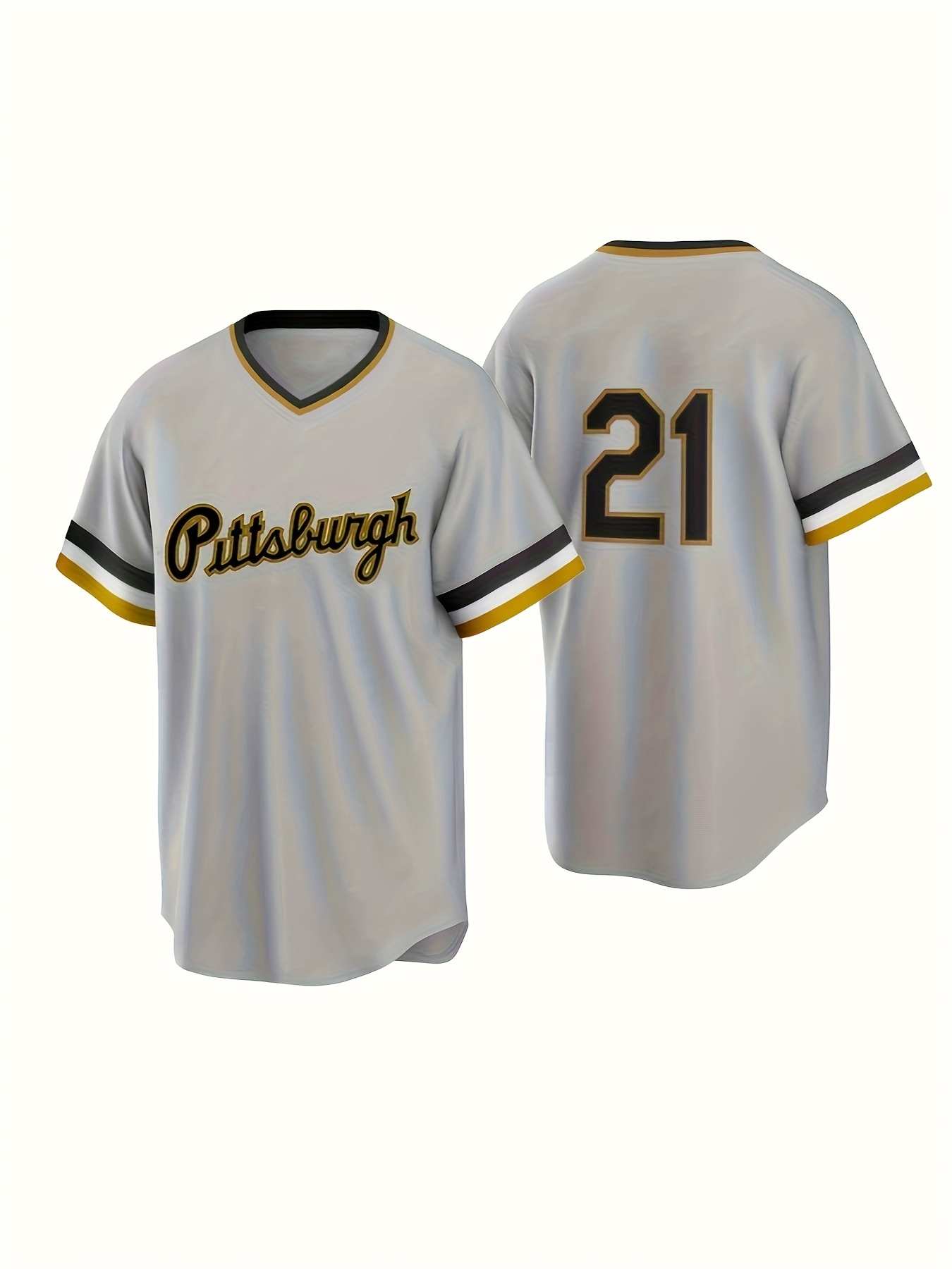 Men's Vintage Pittsburgh Baseball Jersey #21 - Retro V-Neck Button-Up, Moisture-Wicking Breathable Polyester, Loose Fit for Sports & Casual Wear (S-XXXL)