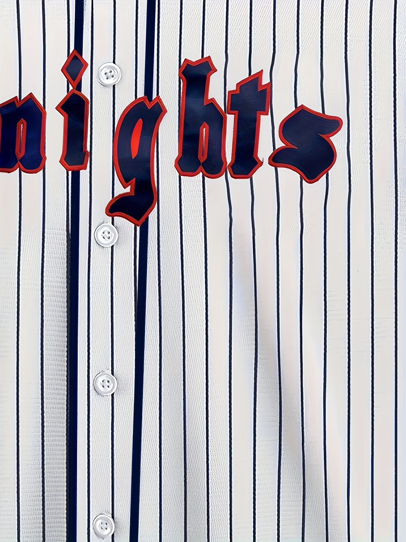 Men'S White Striped # 9 Baseball Shirt, Classic Letter Embroidery Design, Button Style Short Sleeved Breathable
