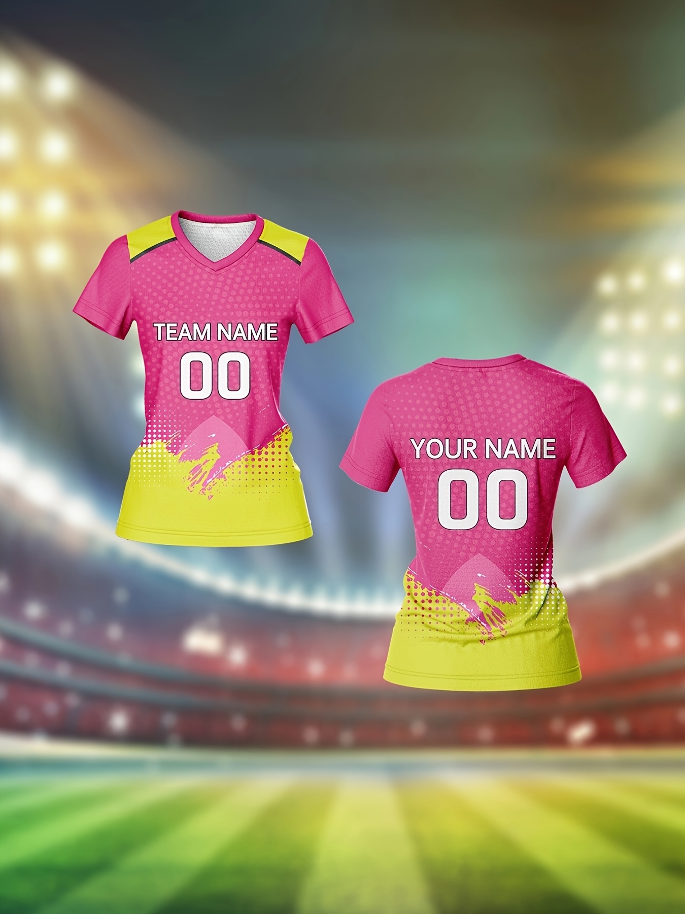 Customizable Women'S Pink Soccer Jersey with V-Neck, Team Name & Number Print - Breathable, Quick-Dry, Comfort Fit for Training & Fitness, Team Sports Apparel | Vibrant Jersey | Comfortable Fit, Soccer Gear