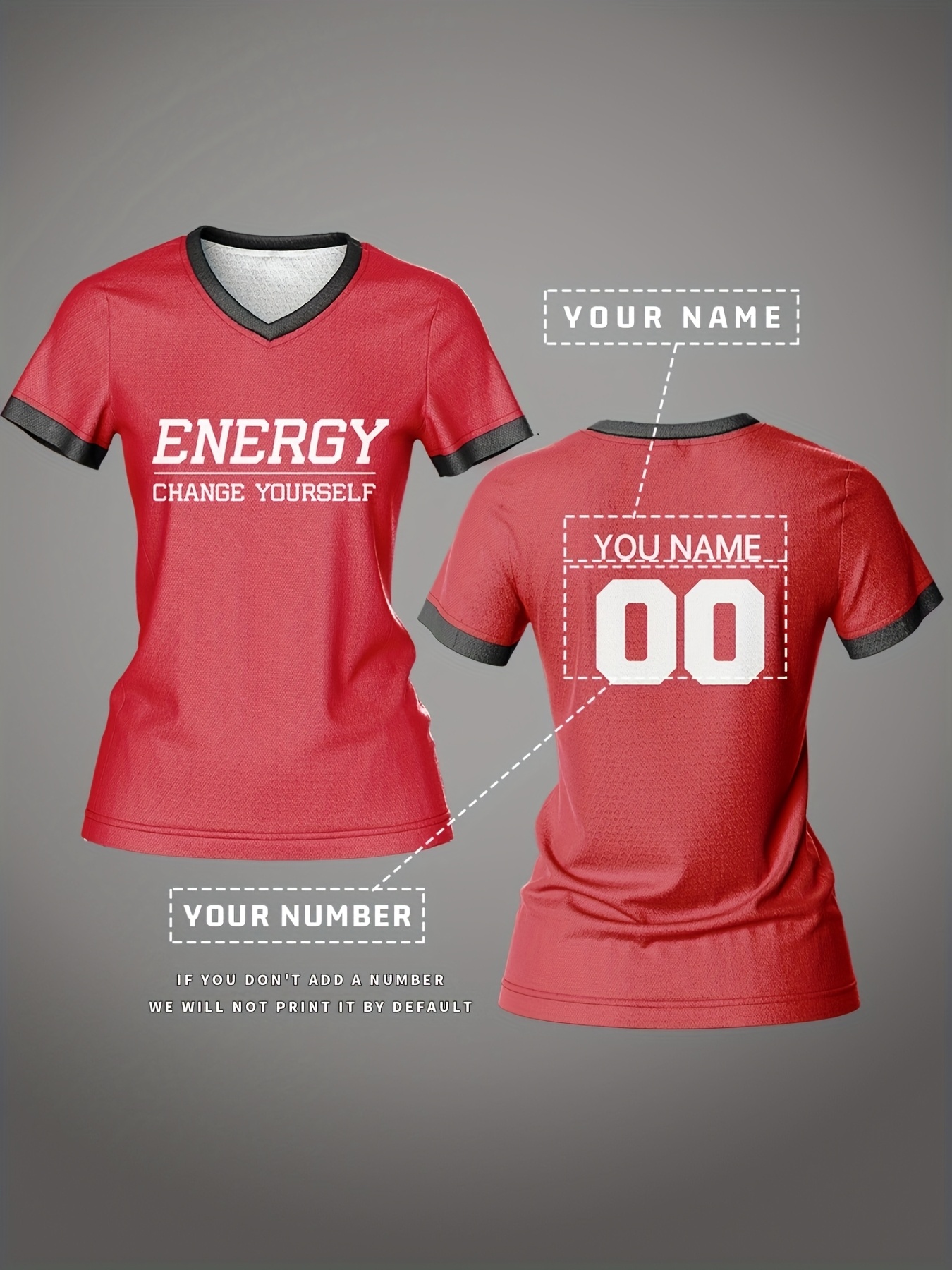 Customizable Women's V-Neck Football Jersey Top - Personalized Name & Number, Breathable, Quick-Drying, Polyester, Ideal for Team Training & Casual Wear, Football Accessories